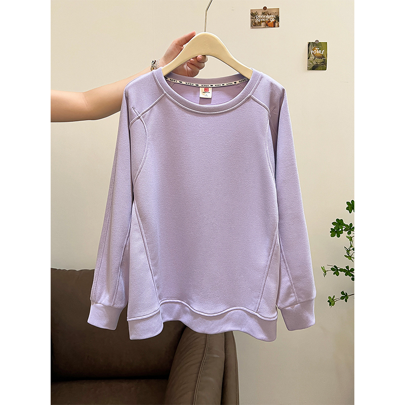 FA46156# 原版质量特大码300斤设计感巨好看的浅紫色卫衣女新款 服裝批發女裝批發服飾貨源