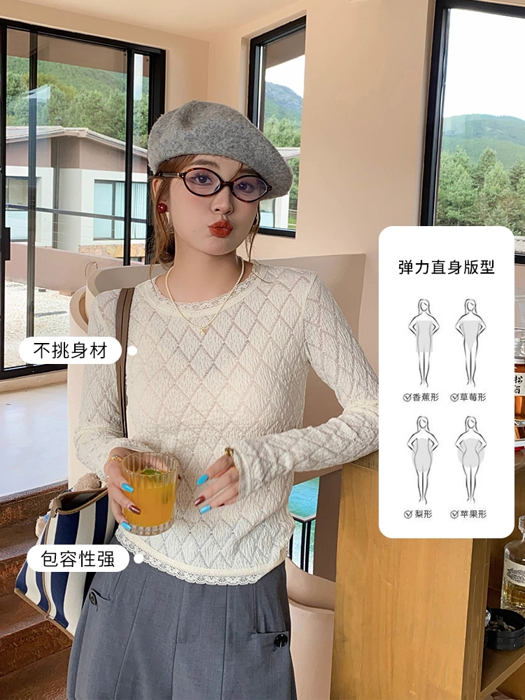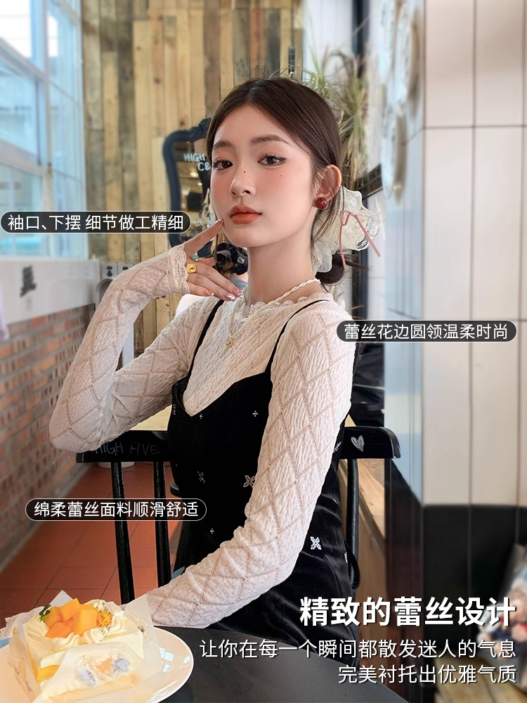 FA46457# 蕾丝边打底衫女内搭高级早秋长袖小香