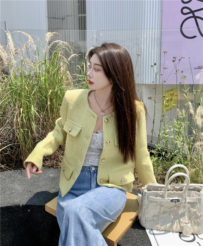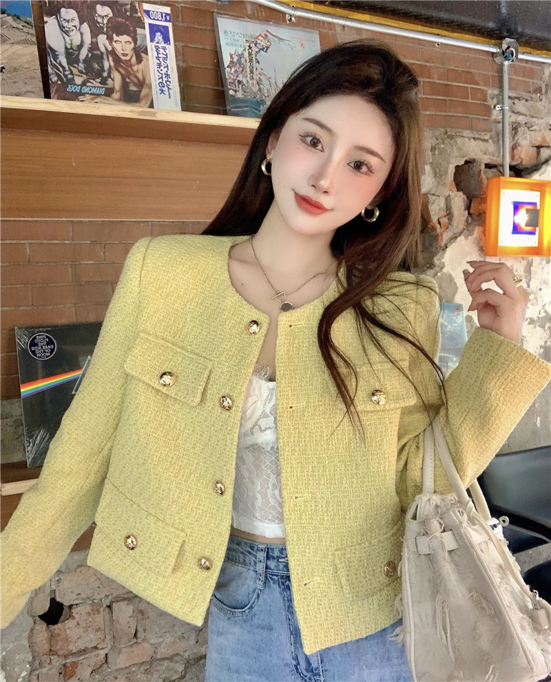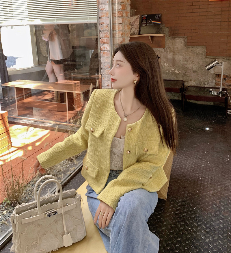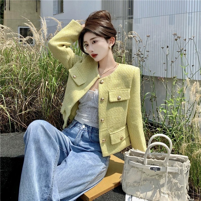 FA46509# 黄色短款小香风外套女秋季新款高级感宽松百搭上衣夹克