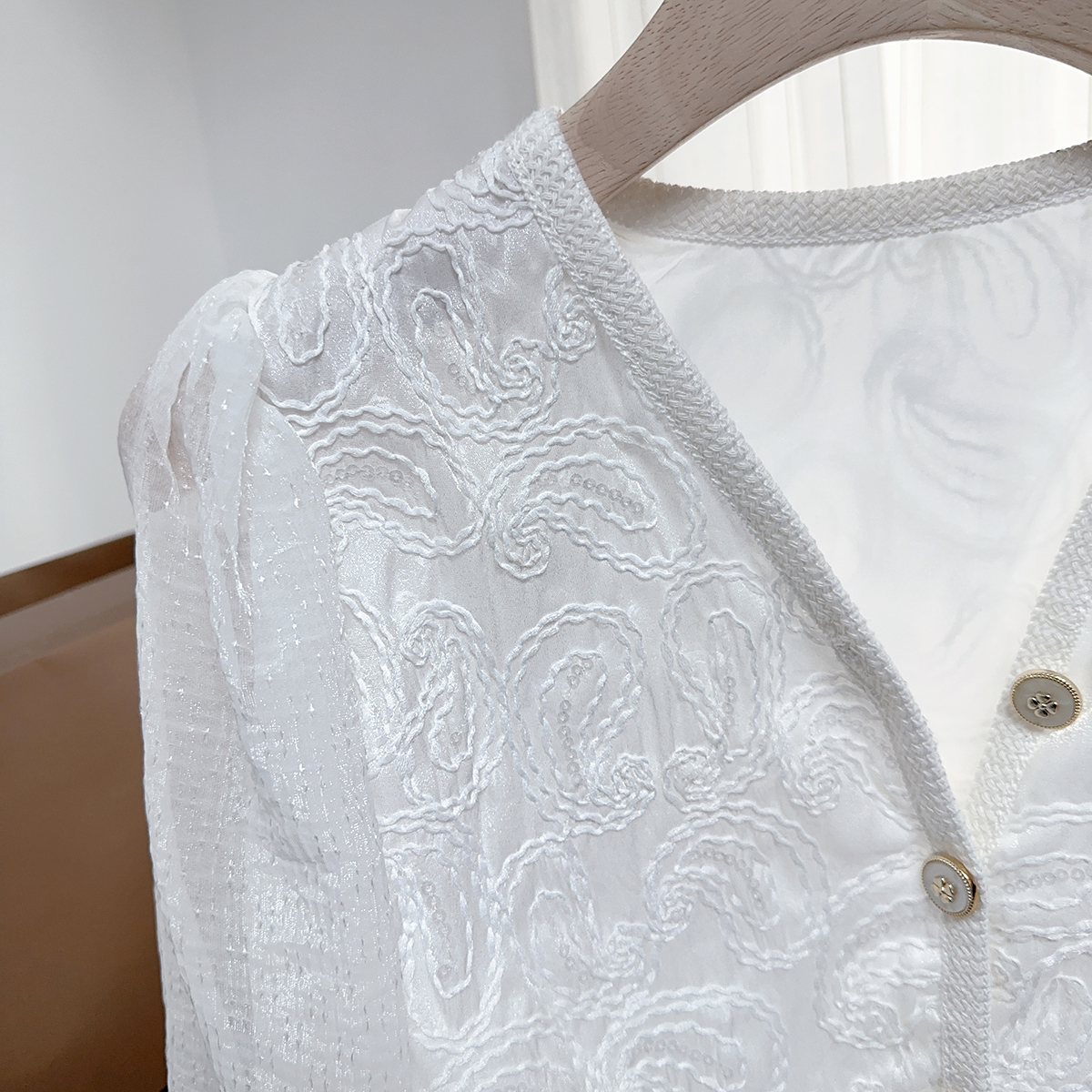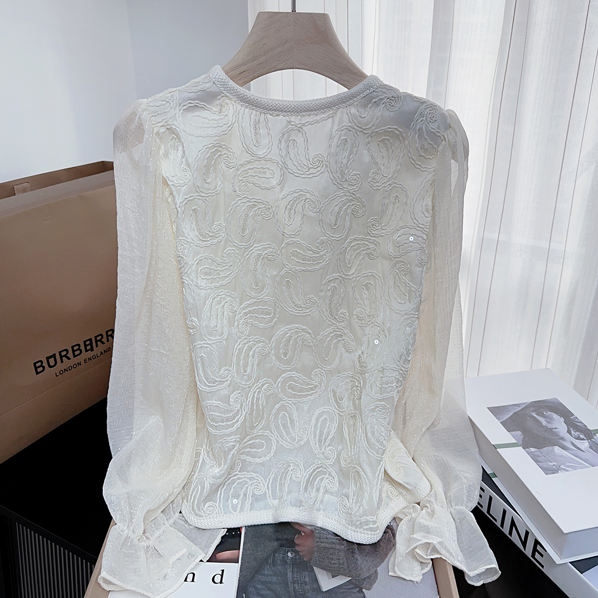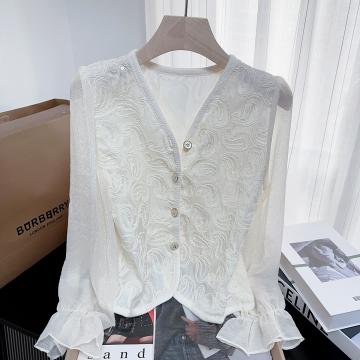 FA46598# 小香通勤气质春秋长袖衬衫女新款高级感提花小众短款上衣