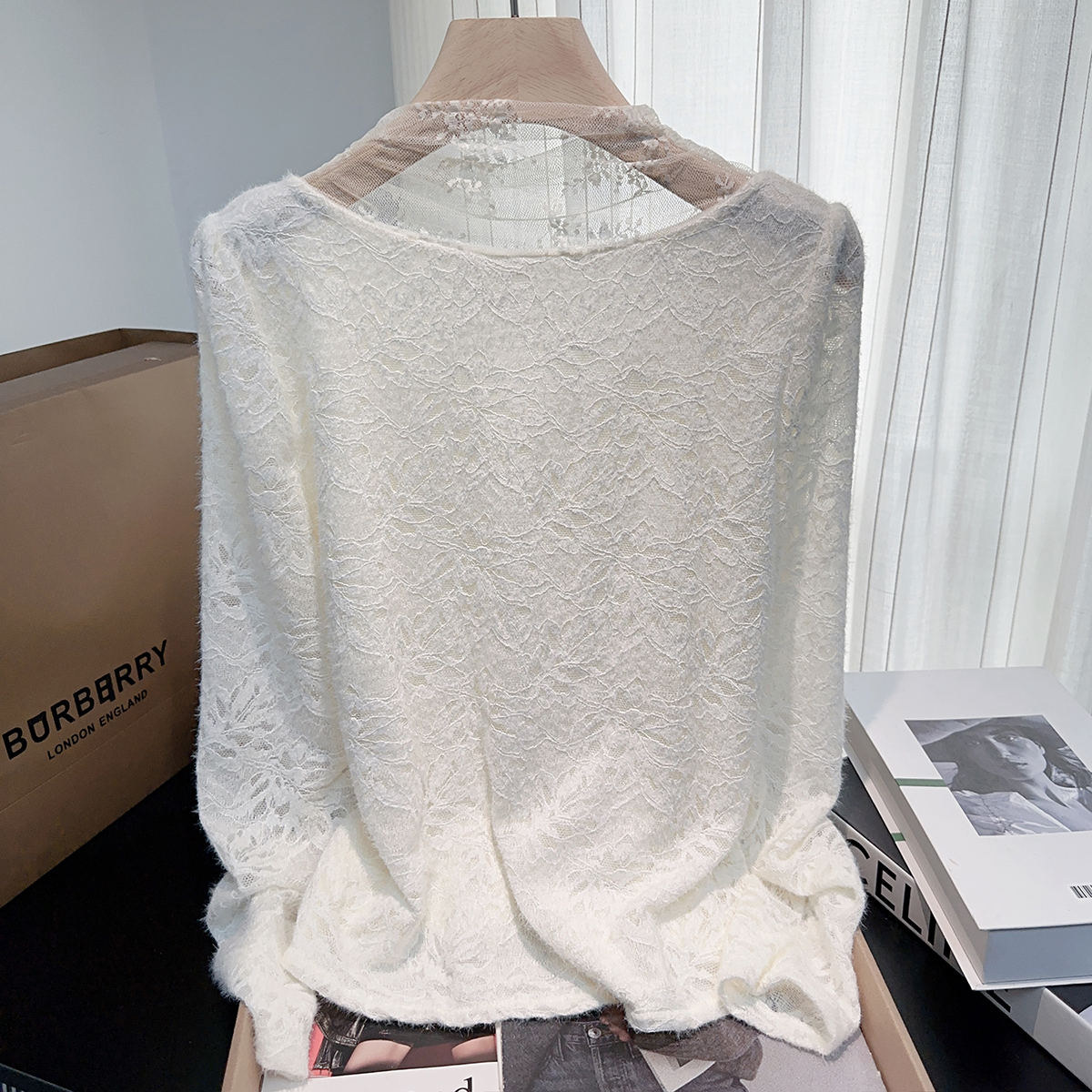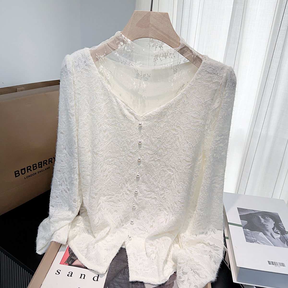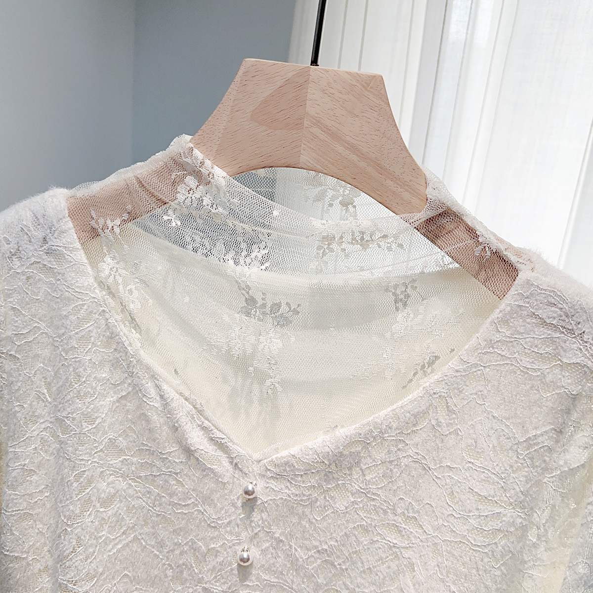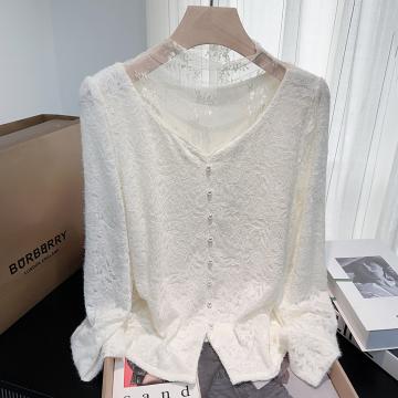 FA46600# 秋冬加绒加厚蕾丝外穿内搭打底衫温柔假两件百搭长袖衬衫女