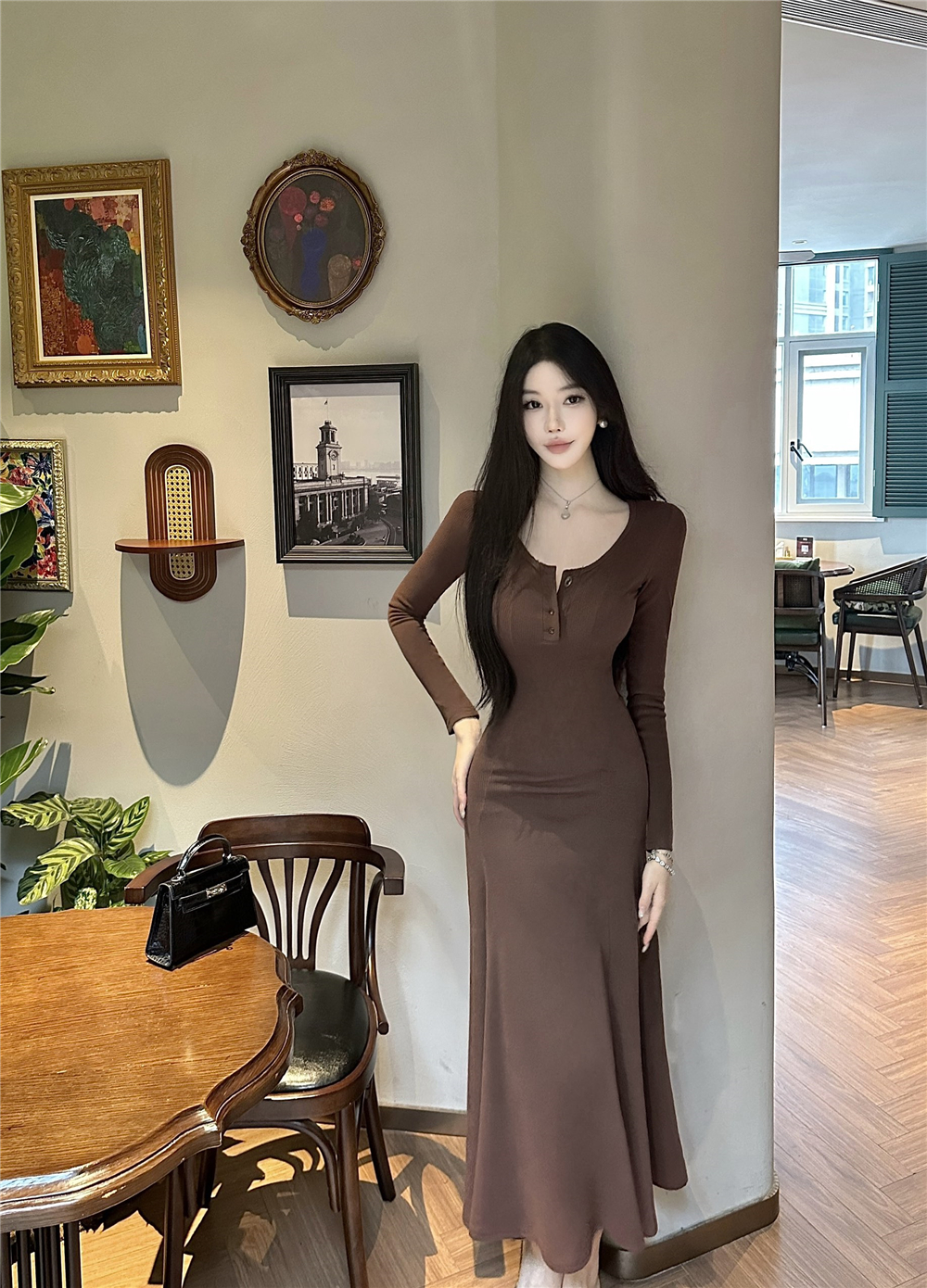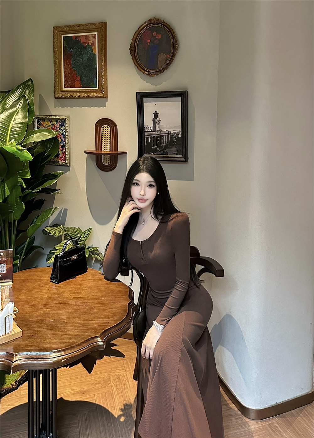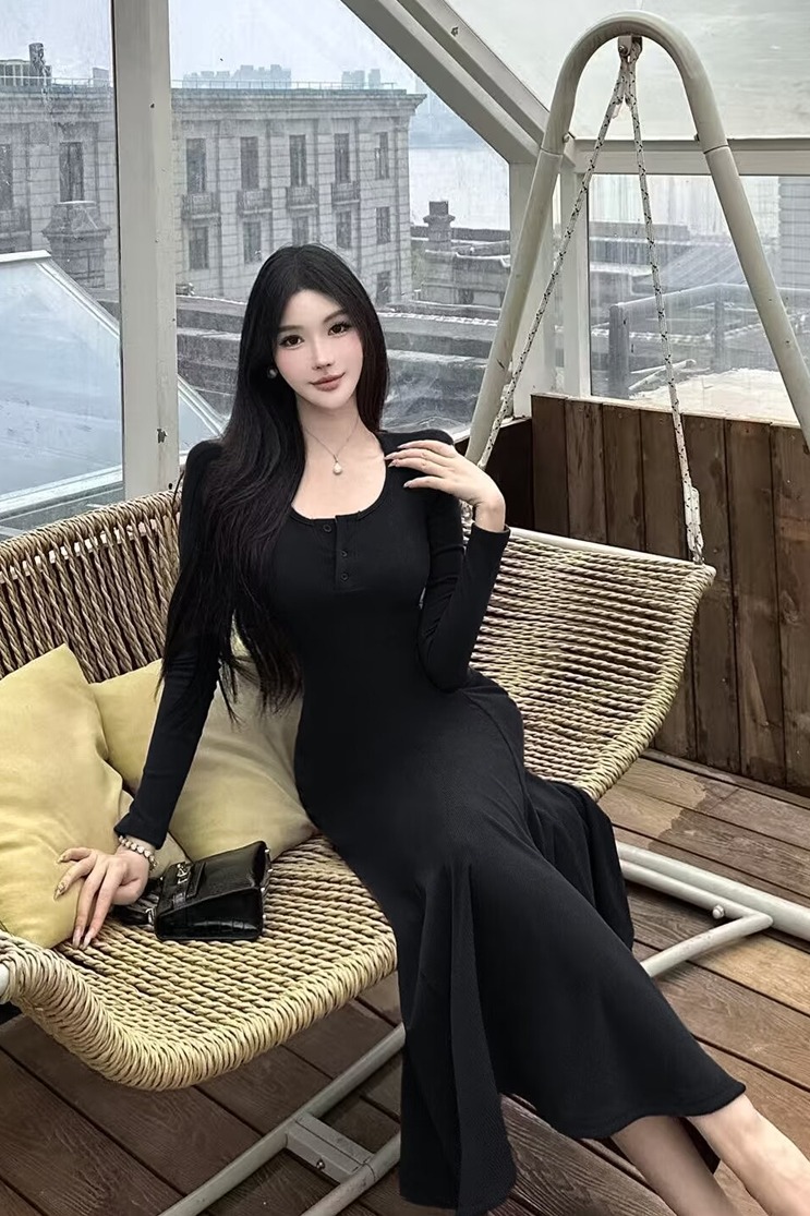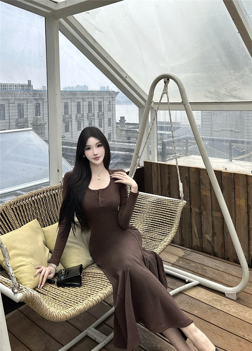 FA47021# 穿搭春秋韩系长裙大方得体绝美连衣裙女冷淡系内搭长款裙子 服裝批發女裝批發服飾貨源