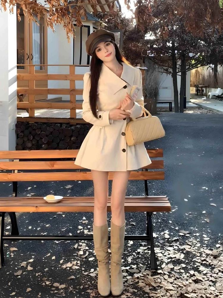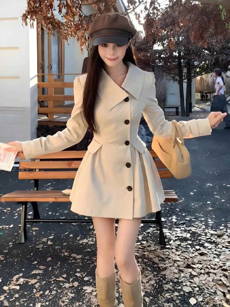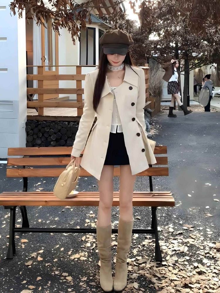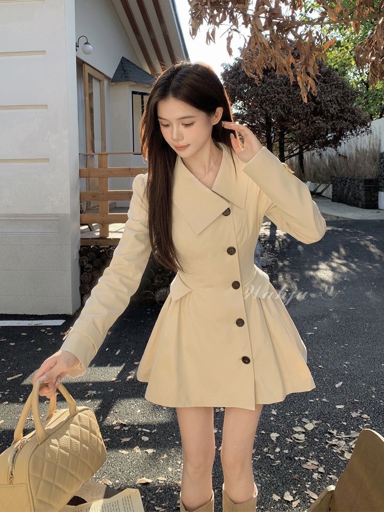 FA47050# 韩系巨好看杏色风衣外套女秋季穿搭气质高级感收腰显瘦中长款大衣 服裝批發女裝批發服飾貨源