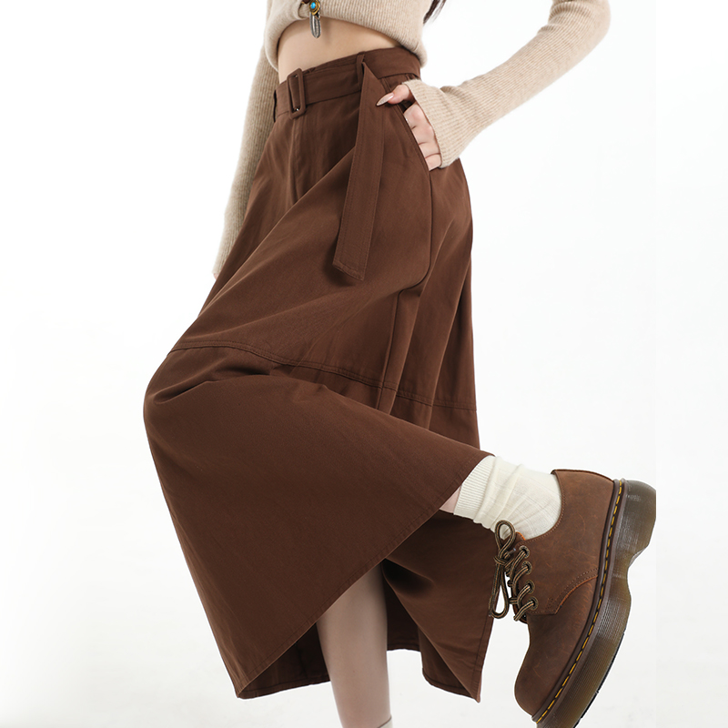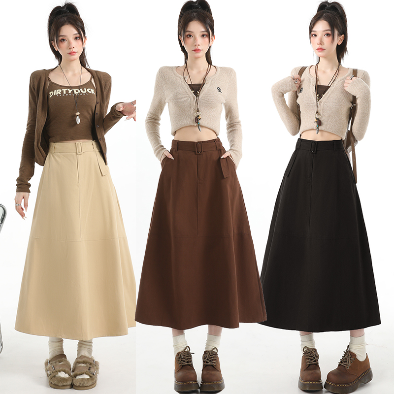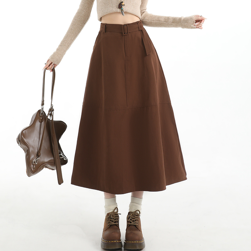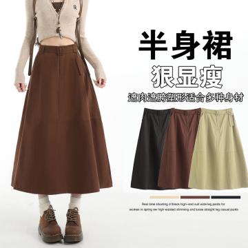 秋冬高腰遮胯显瘦中长洗水棉大摆伞裙半身气质通勤a字裙 服裝批發女裝批發服飾貨源