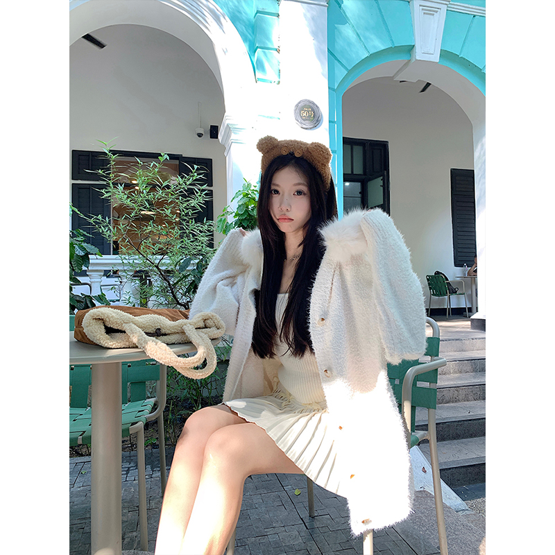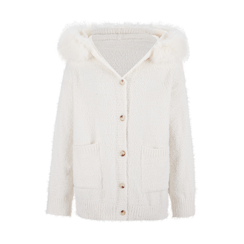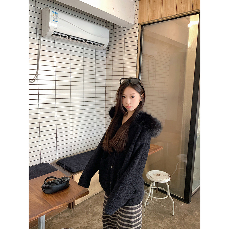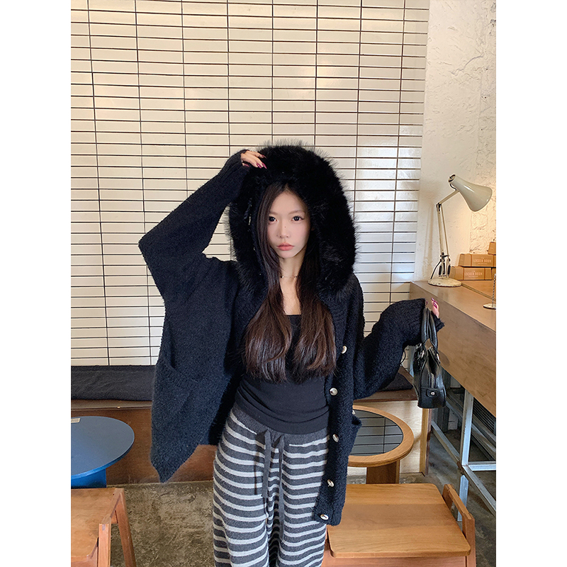 纯欲大毛领连帽宽松毛衣外套软糯针织上衣 服裝批發女裝批發服飾貨源
