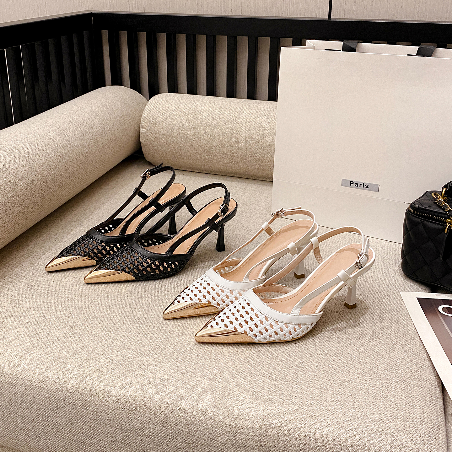 X-32831# 秋季新款性感时尚百搭编辑网面尖头前包后空金属扣凉鞋 鞋子批发女鞋批发货源