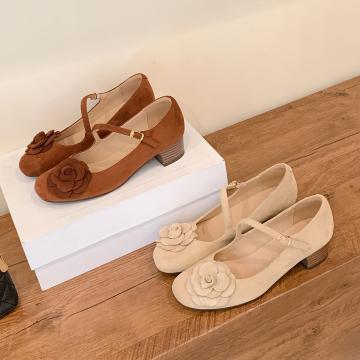 X-32840# 上新小众设计时尚花朵通勤粗跟单鞋复古方头浅口一字带玛丽珍鞋女 鞋子批发女鞋批发货源