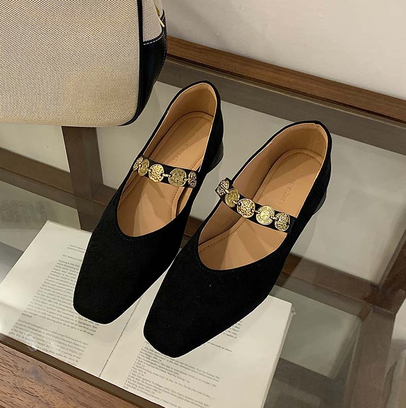 X-32866# 绿色鞋子鞋子女新款爆款秋冬麂皮方头金币链条丝绒玛丽珍女鞋 鞋子批发女鞋批发货源