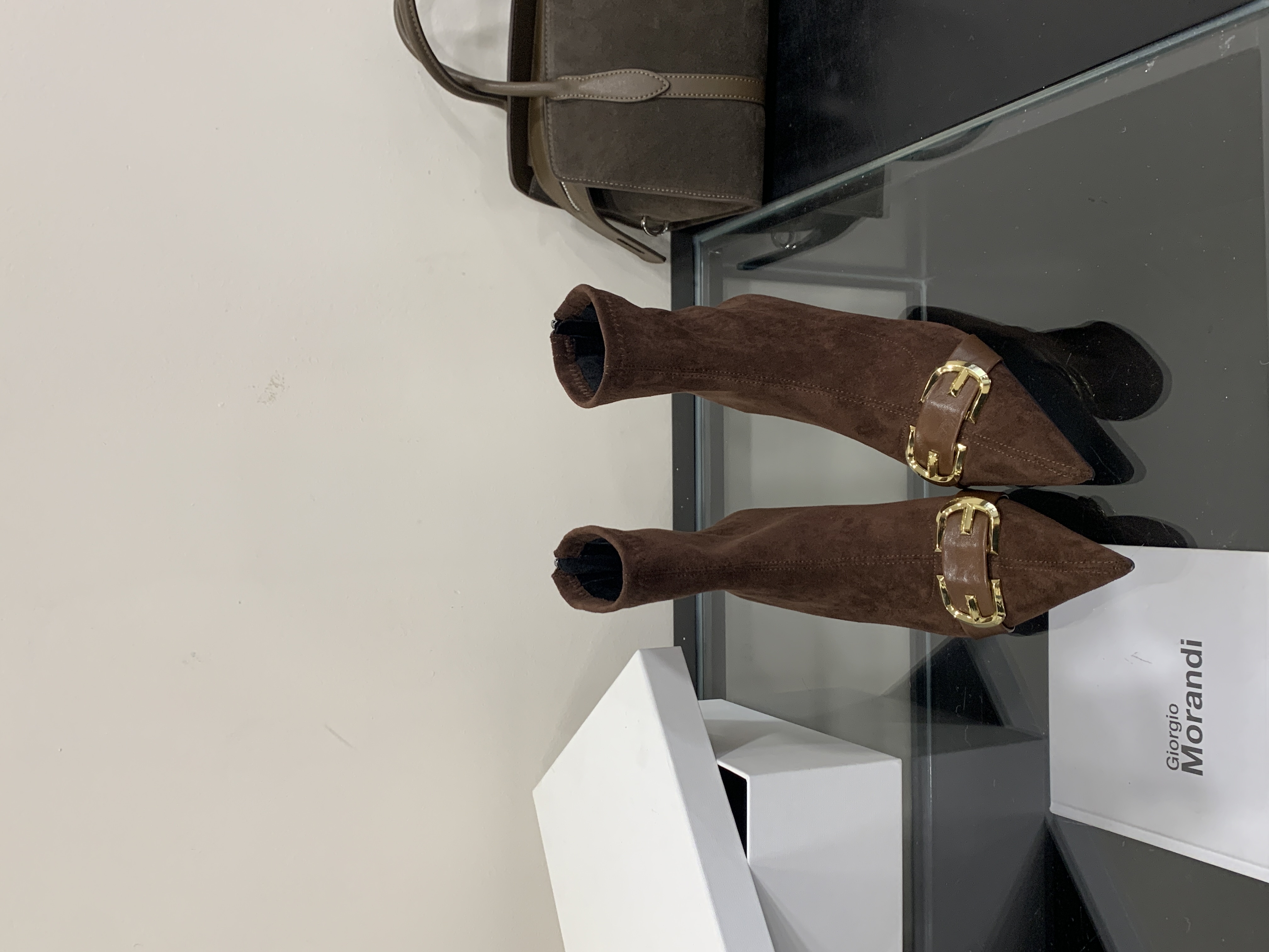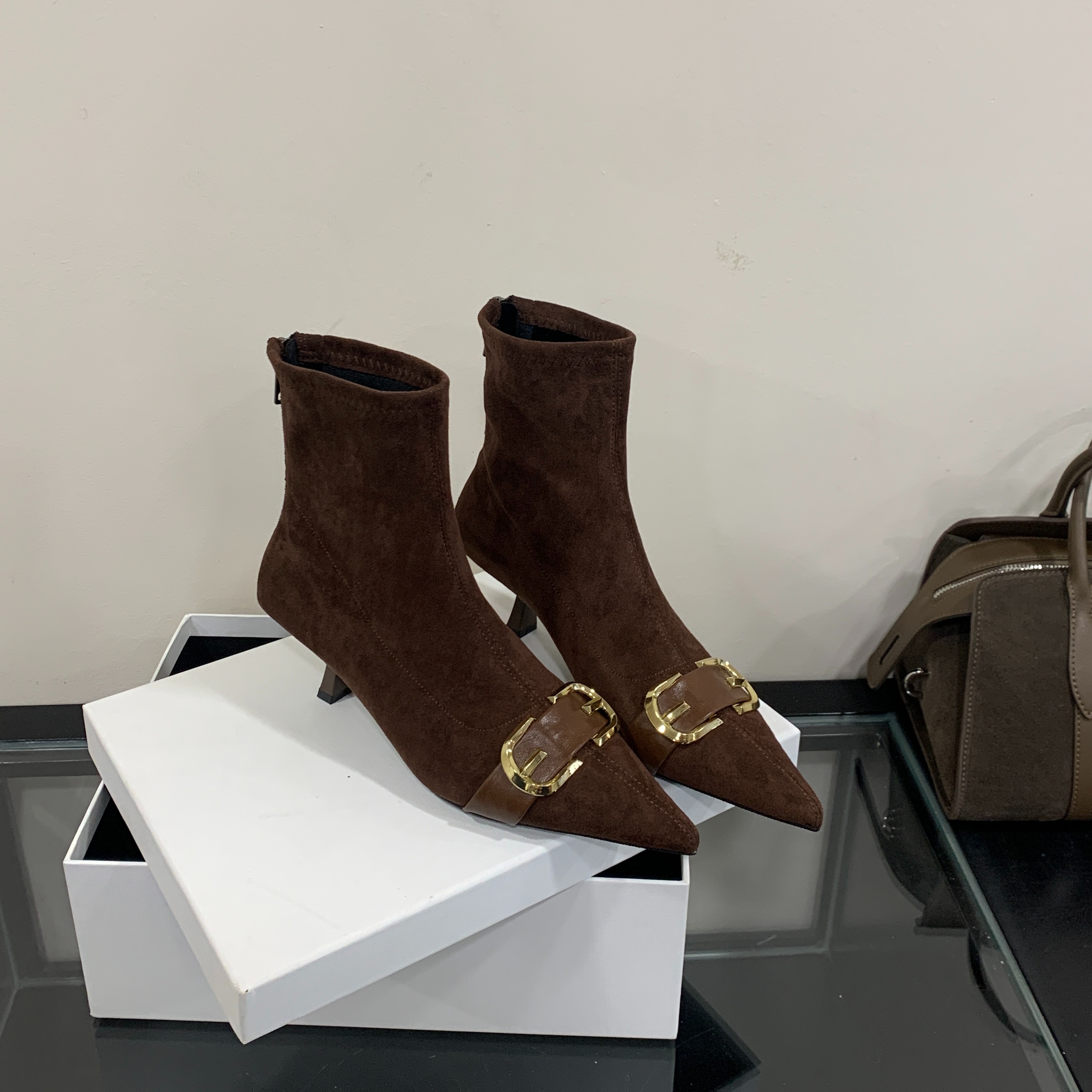 X-32940# 新款尖头瘦瘦靴时尚百搭加绒扣子细跟高跟通勤秋冬靴女 鞋子批发女鞋批发货源