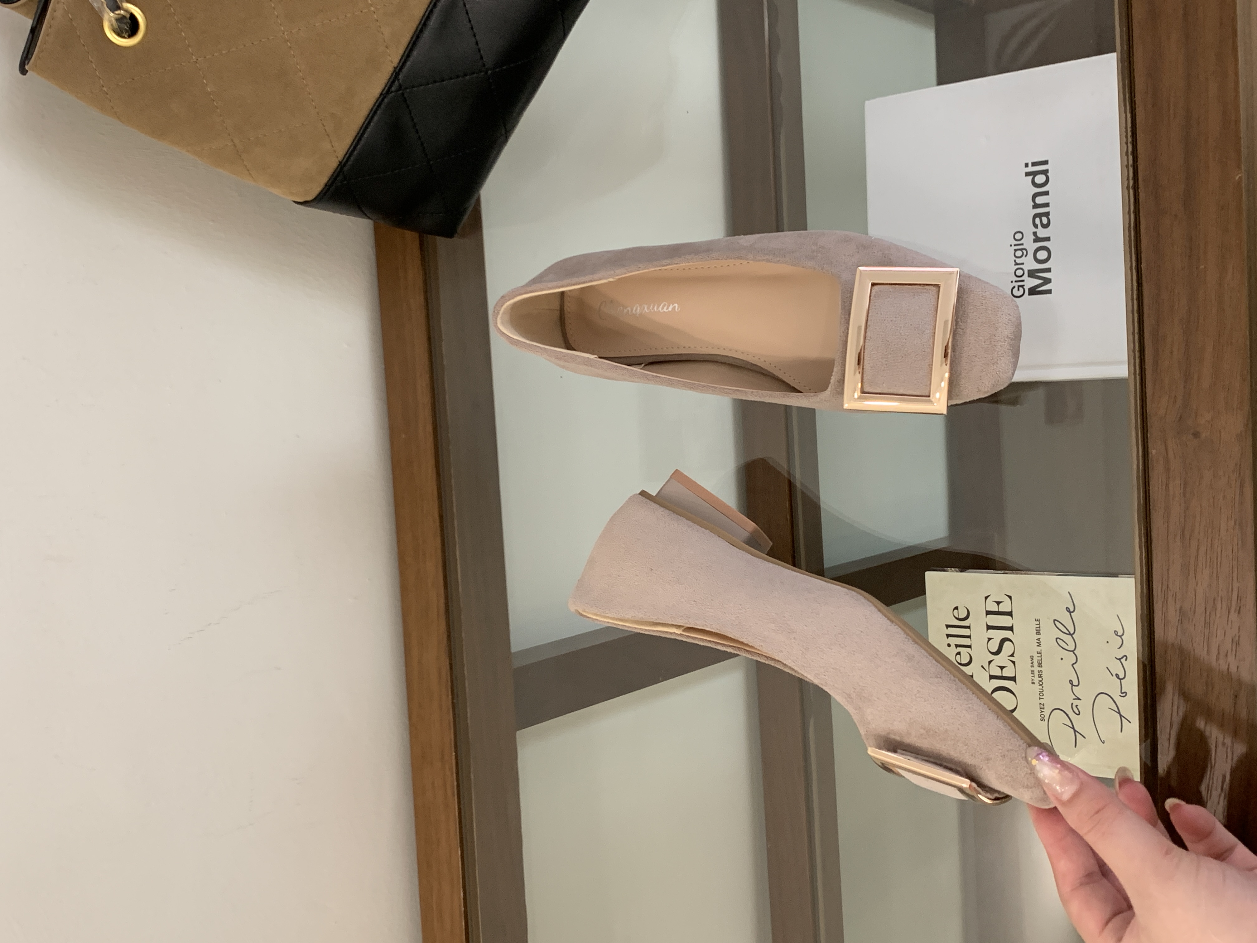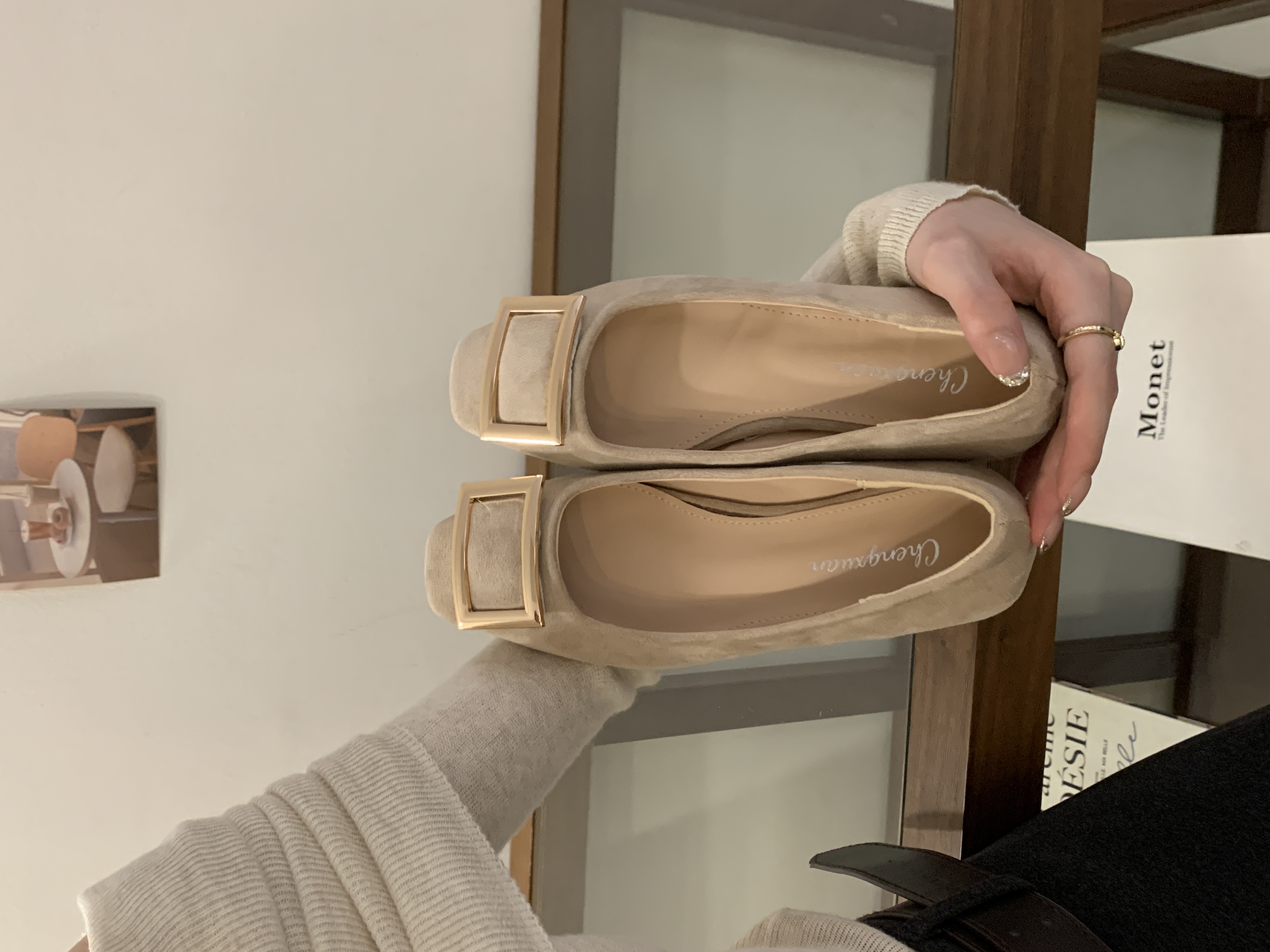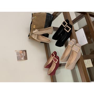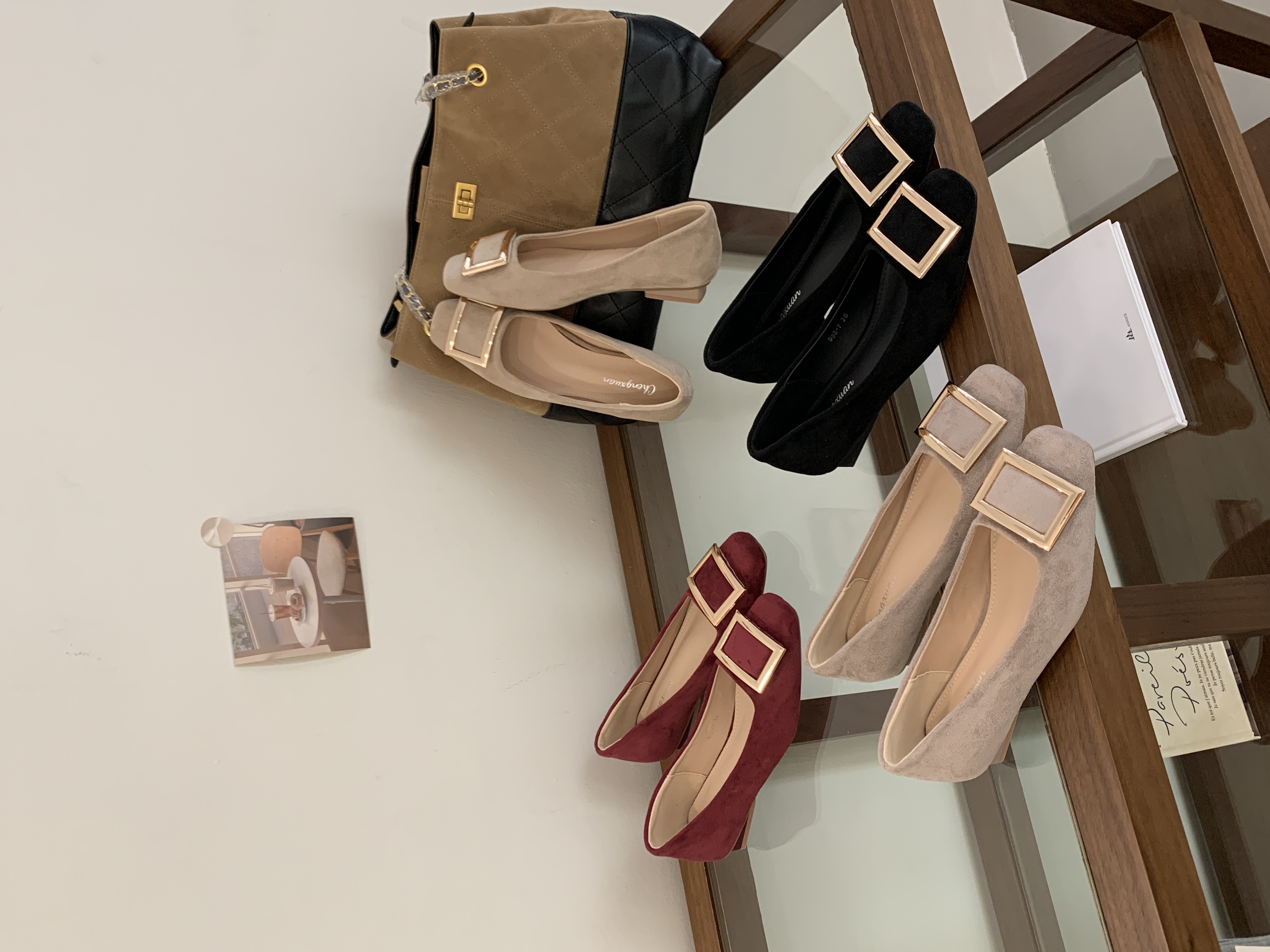 X-32945# 新款韩版方扣绒料方头低跟单鞋酒红色 鞋子批发女鞋批发货源