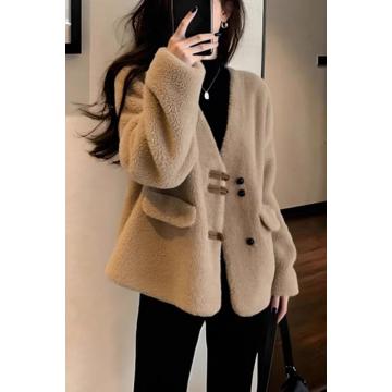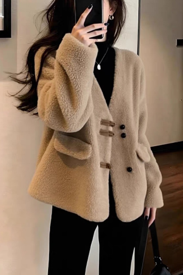 FA47278# 巨好看的初冬外套新款高端小资绝美巨好看小香风咖色毛绒上衣 服裝批發女裝批發服飾貨源