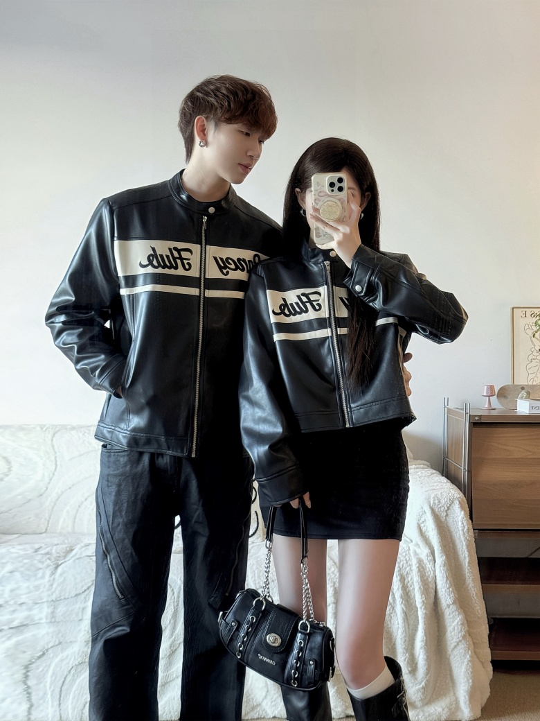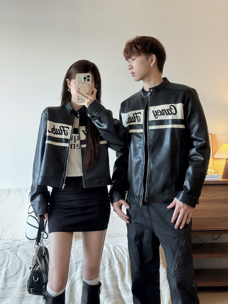 FA47864# 情侣装一长一短皮衣 服裝批發女裝批發服飾貨源