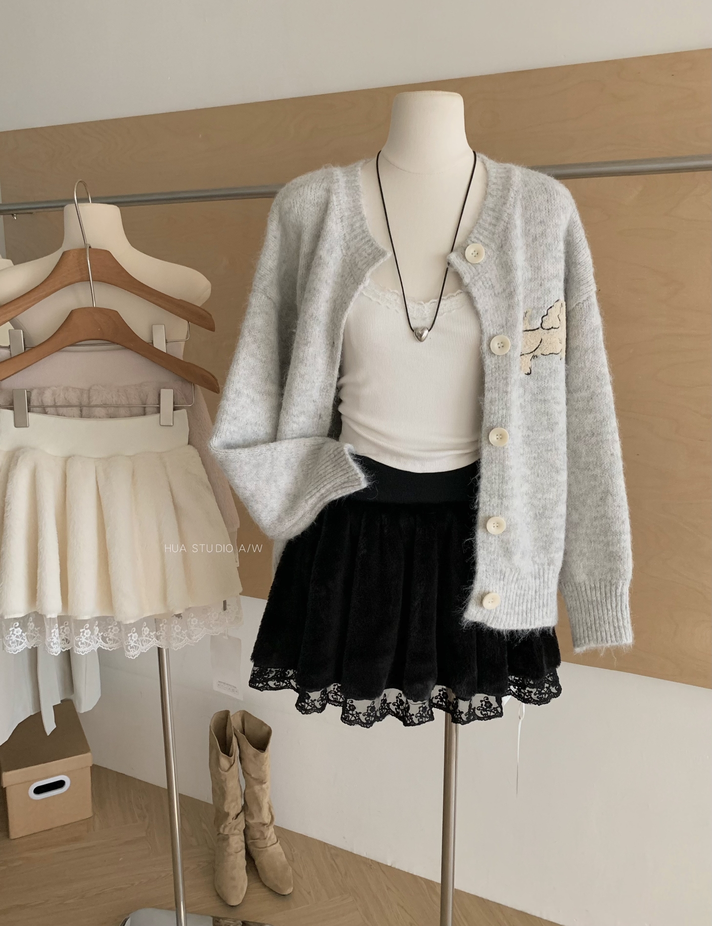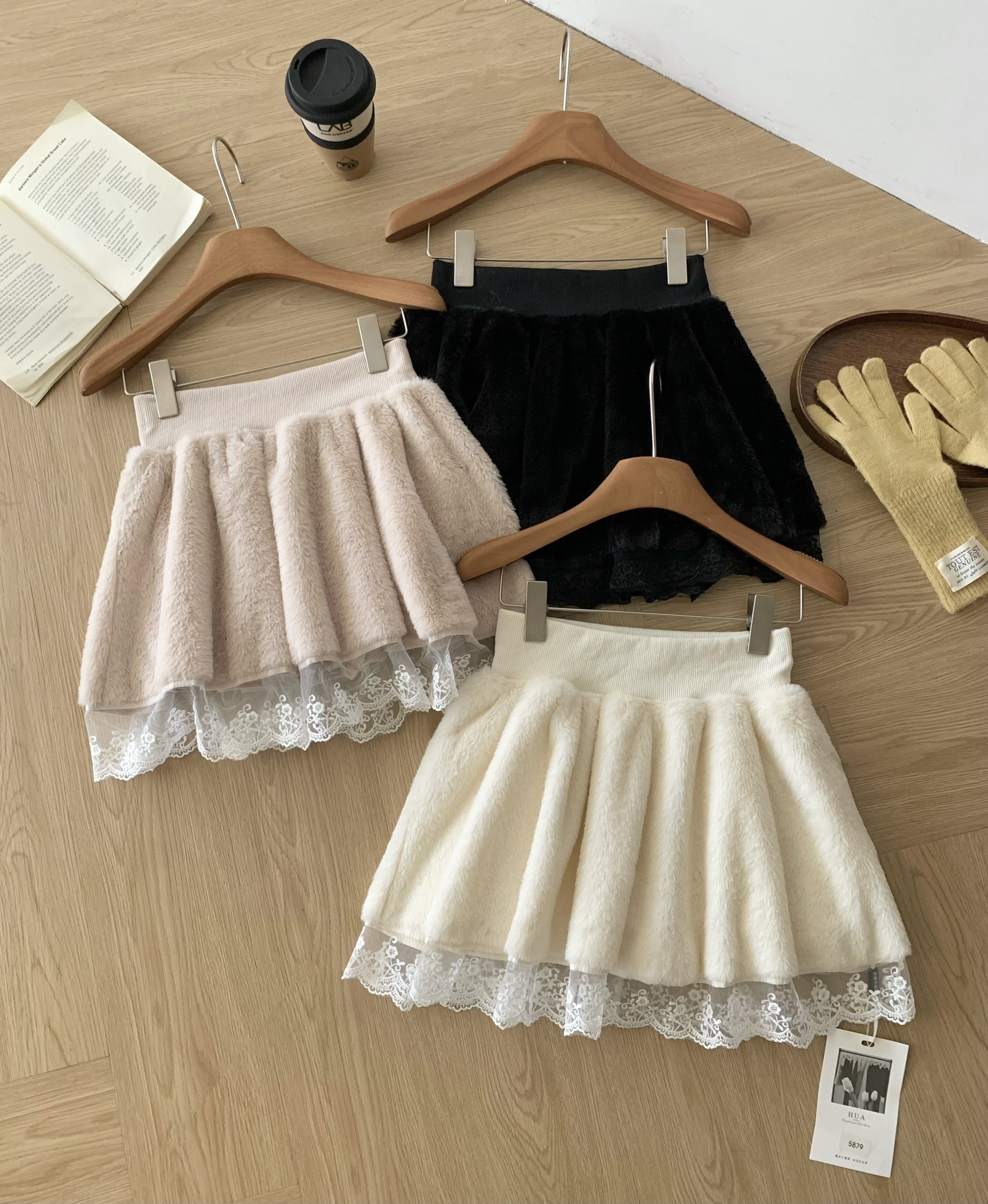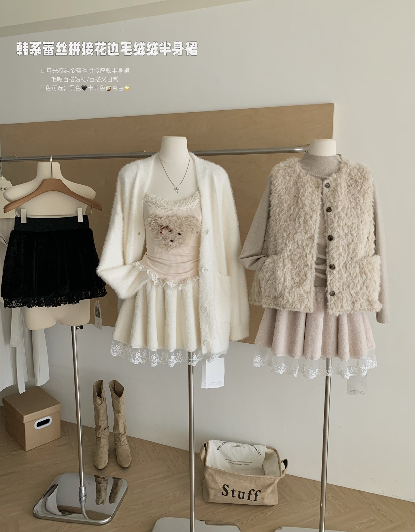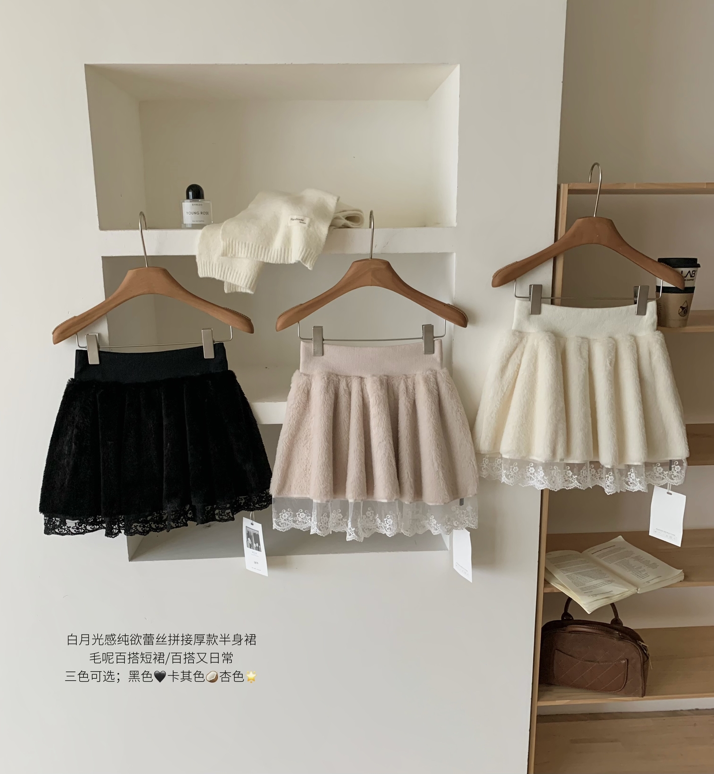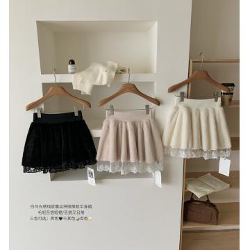 FA47939# 晴冬莓果白月光感纯欲蕾丝拼接厚款半身裙毛呢百搭短裙 服裝批發女裝批發服飾貨源