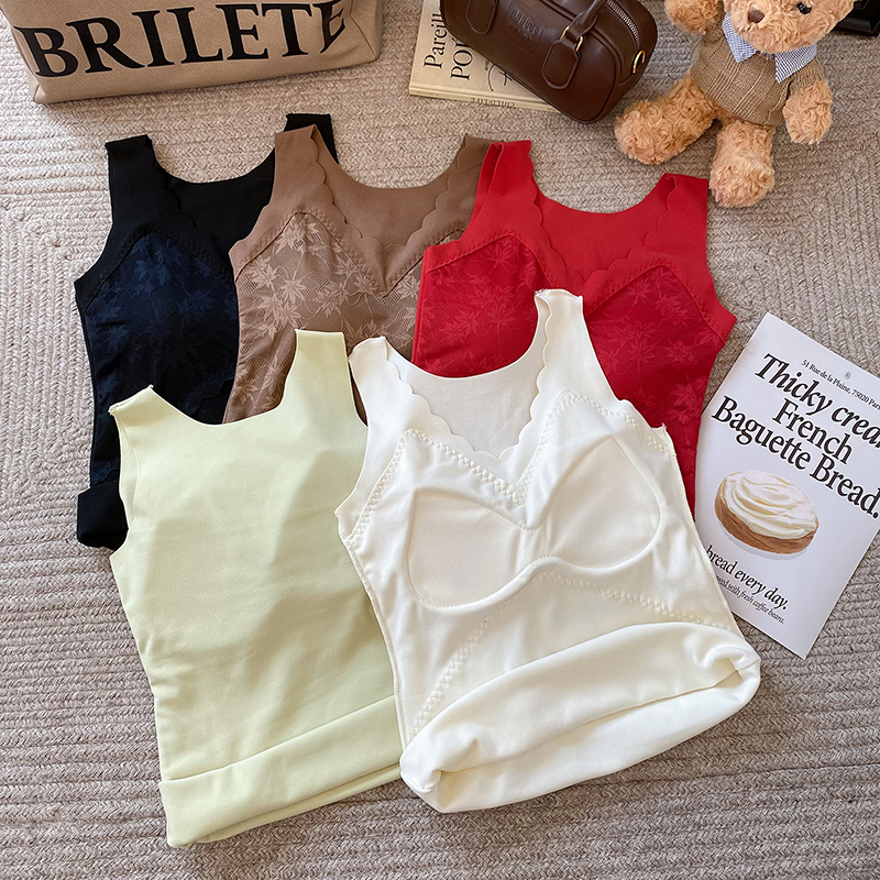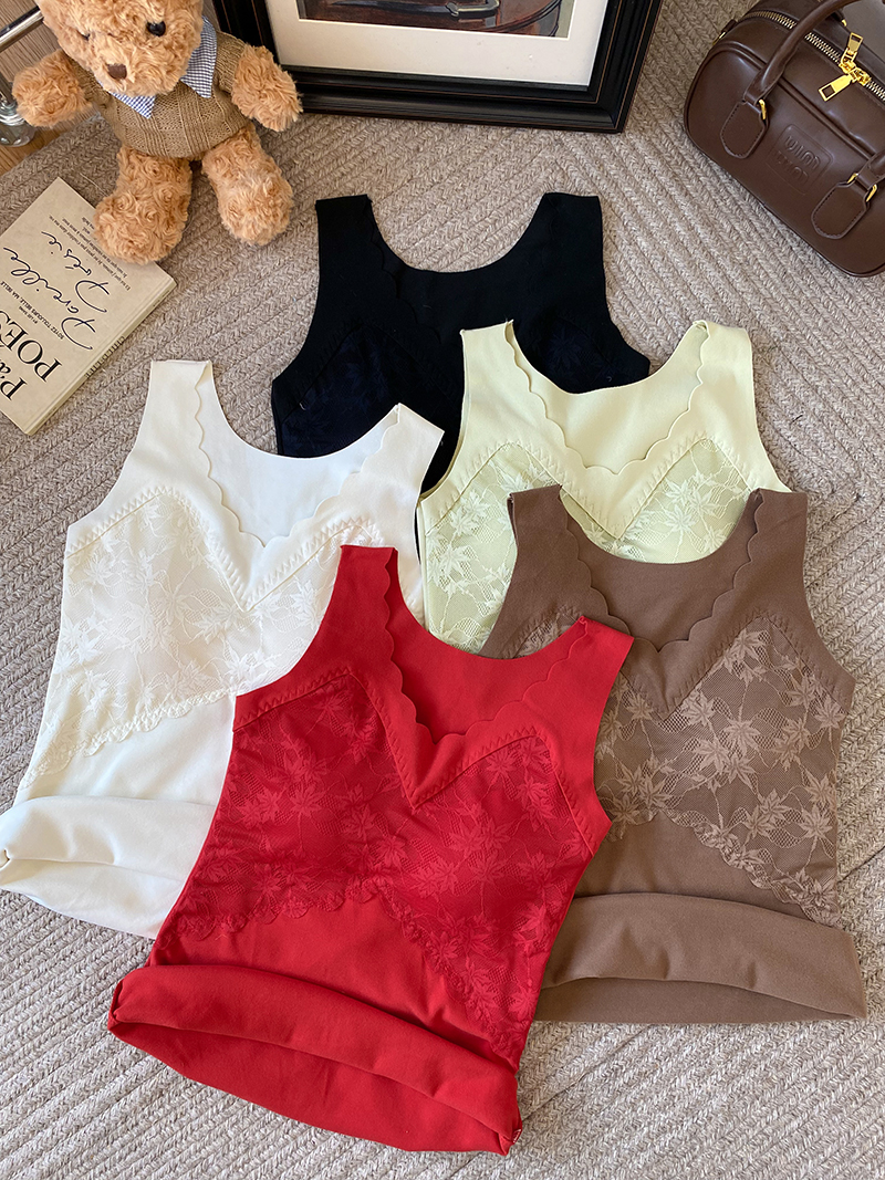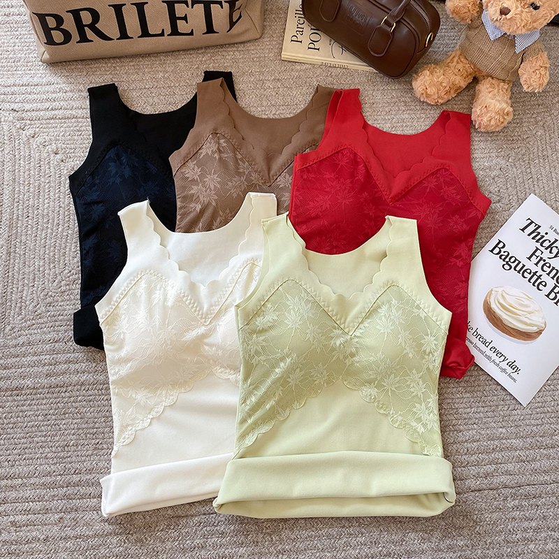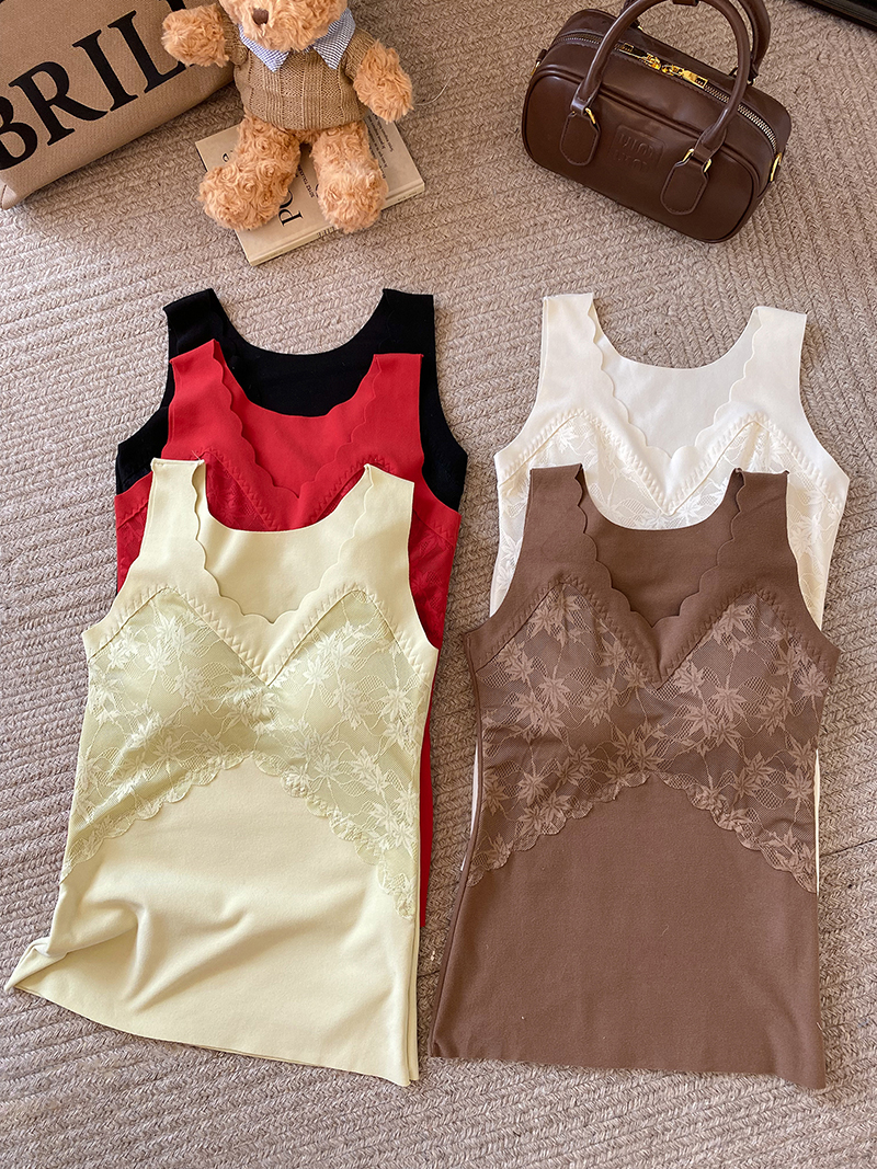 FA48145# 大码秋冬保暖背心螺纹绒蕾丝内衣速热暖绒长打底衫200斤可穿 服裝批發女裝批發服飾貨源