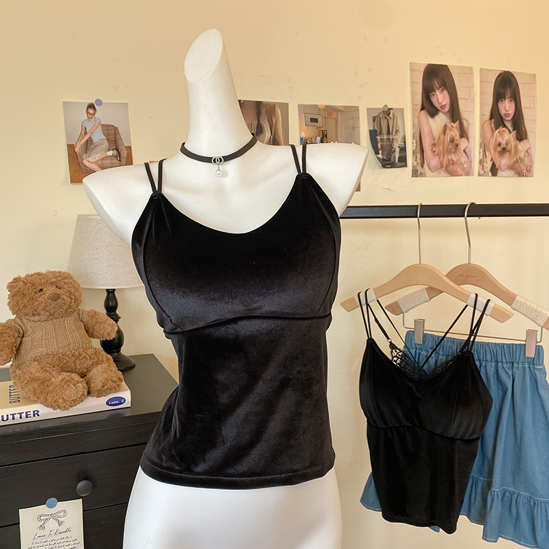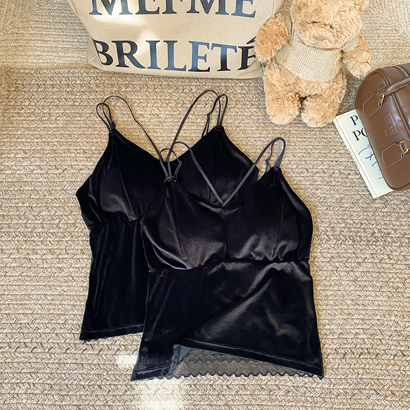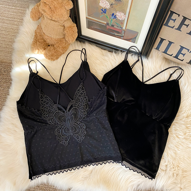 FA48146# 大码秋冬丝绒保暖背心胖MM200斤可穿内搭吊带打底衫带垫内衣 服裝批發女裝批發服飾貨源