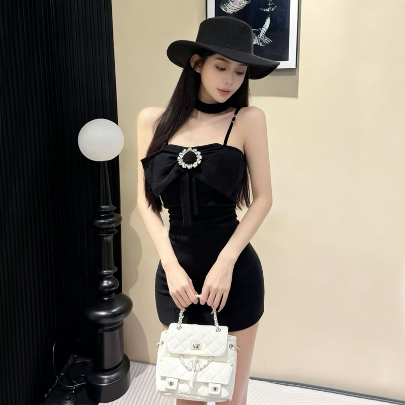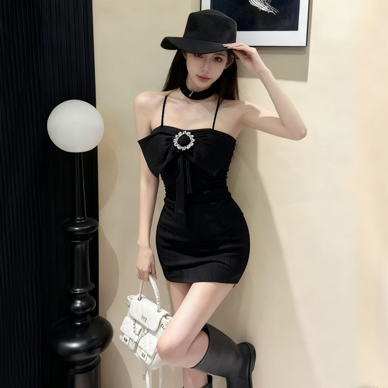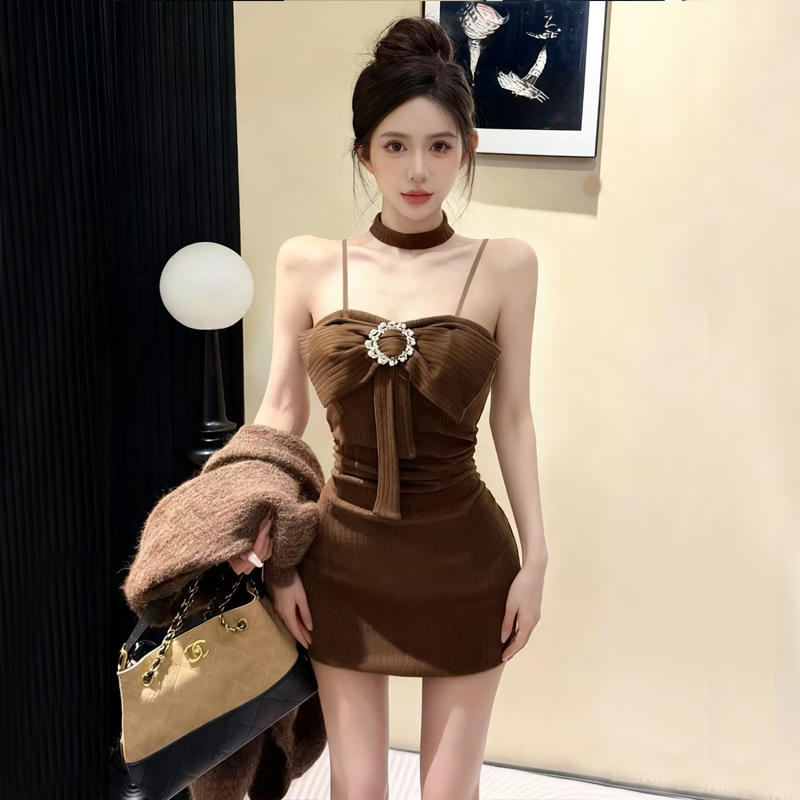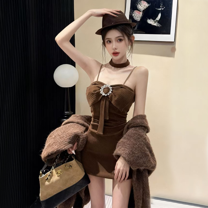 FA48166# 网红爆版羊绒面料纯欲风无袖性感吊带打底包臀内搭连衣裙 服裝批發女裝批發服飾貨源
