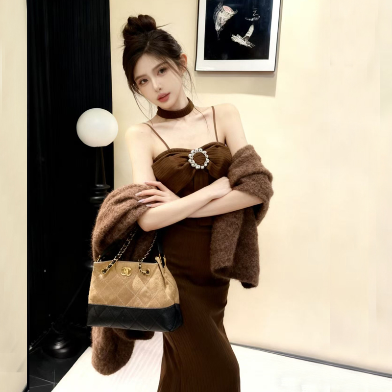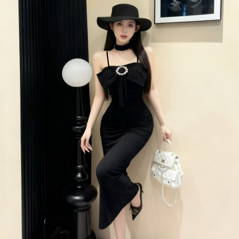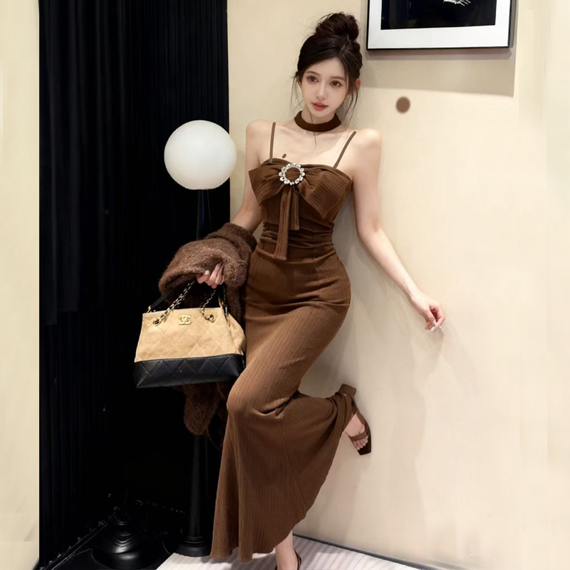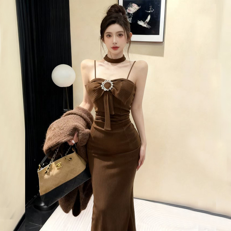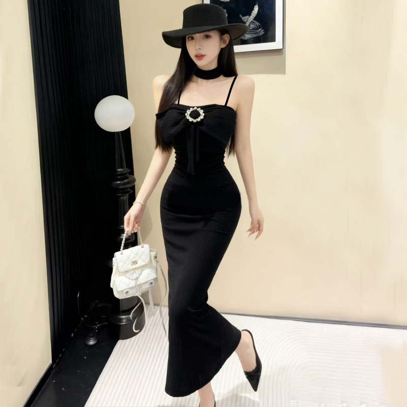 FA48169# 网红爆版羊绒面料纯欲风无袖性感吊带打底包臀中长款内搭连衣裙 服裝批發女裝批發服飾貨源