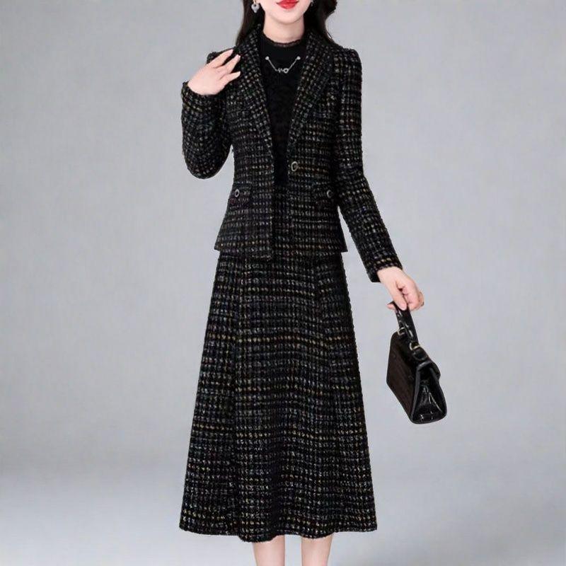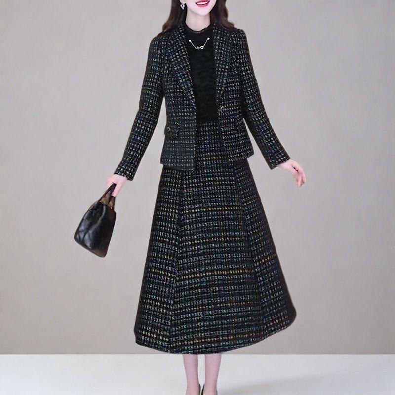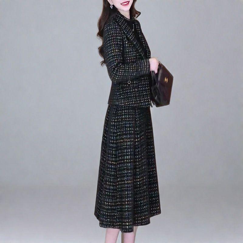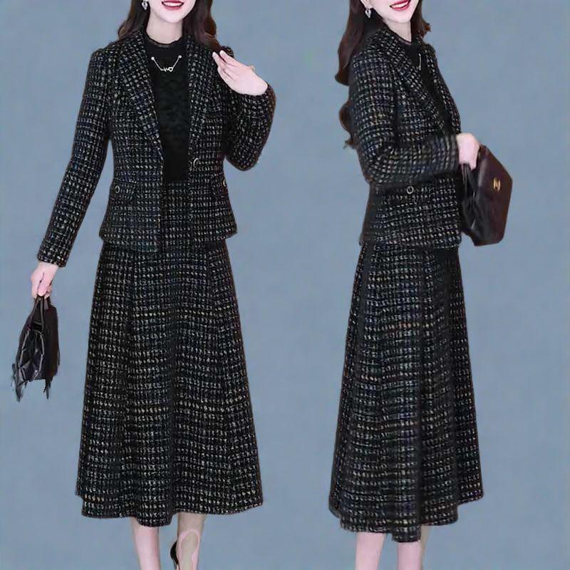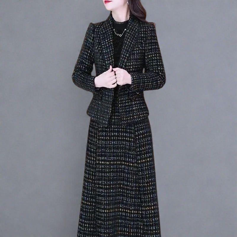 FA48214# 气质西服套装秋季新款时尚西装外套+蕾丝拼接连衣裙两件套