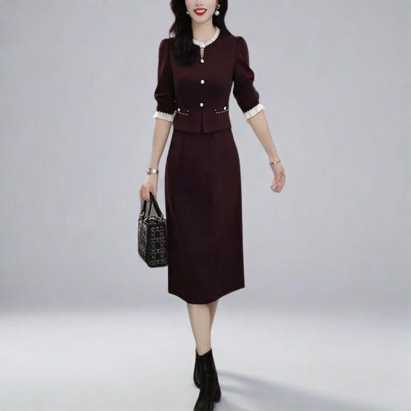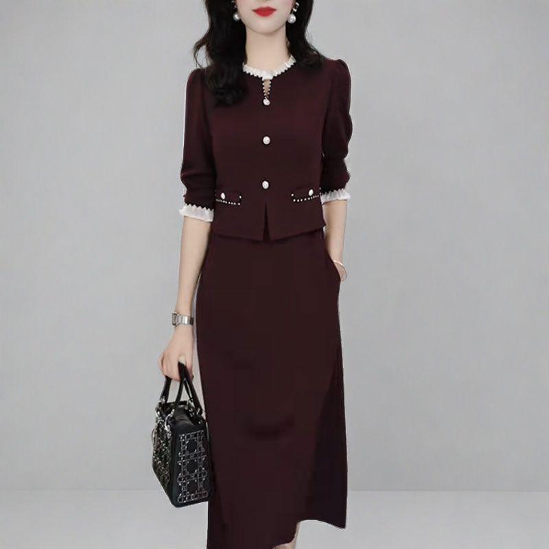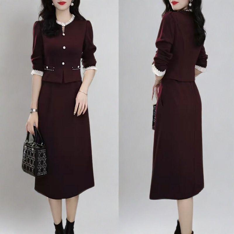 FA48215# 法式小香风长袖连衣裙秋季新款修身显瘦假两件A字裙潮