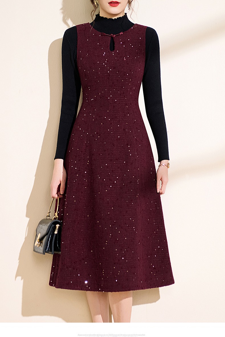FA48574# 红色圆领背心裙连衣裙女冬季新款本命年春秋洋气减龄套装裙 服裝批發女裝批發服飾貨源