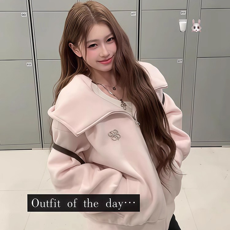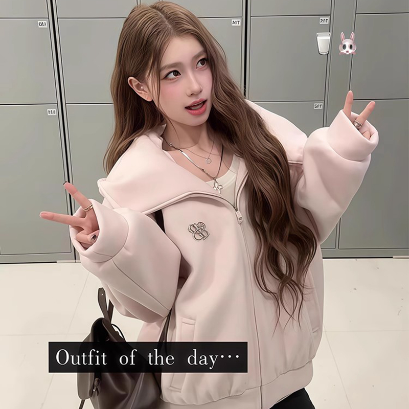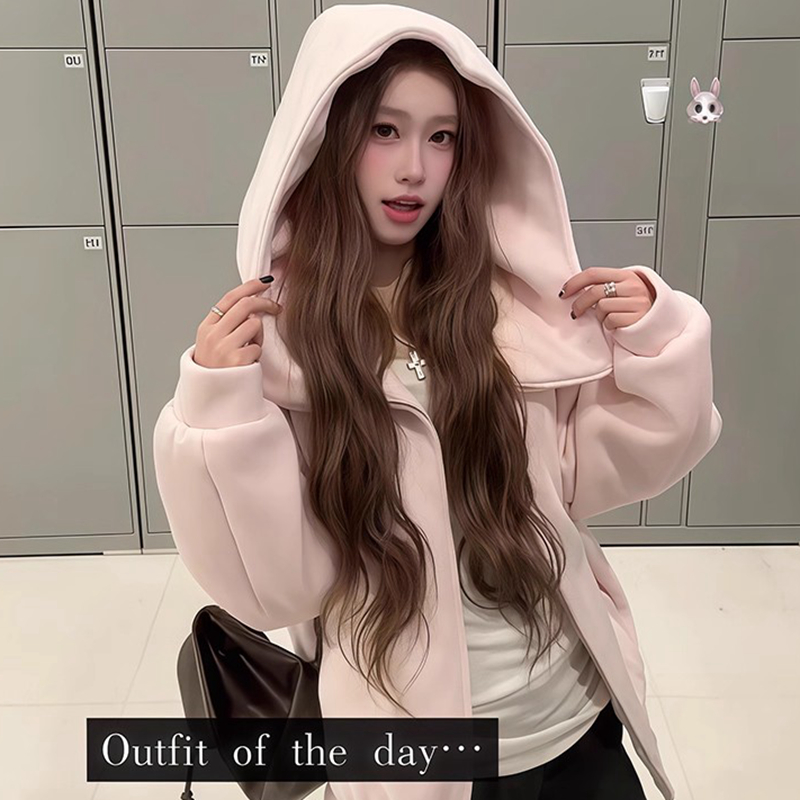 FA48586# 粉色连帽卫衣女秋冬季新爆款韩系独特漂亮巨好看加厚毛毛外套 服裝批發女裝批發服飾貨源