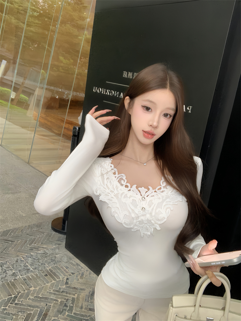 FA48590# 温婉纯欲蕾丝v领内搭针织女上衣 服裝批發女裝批發服飾貨源