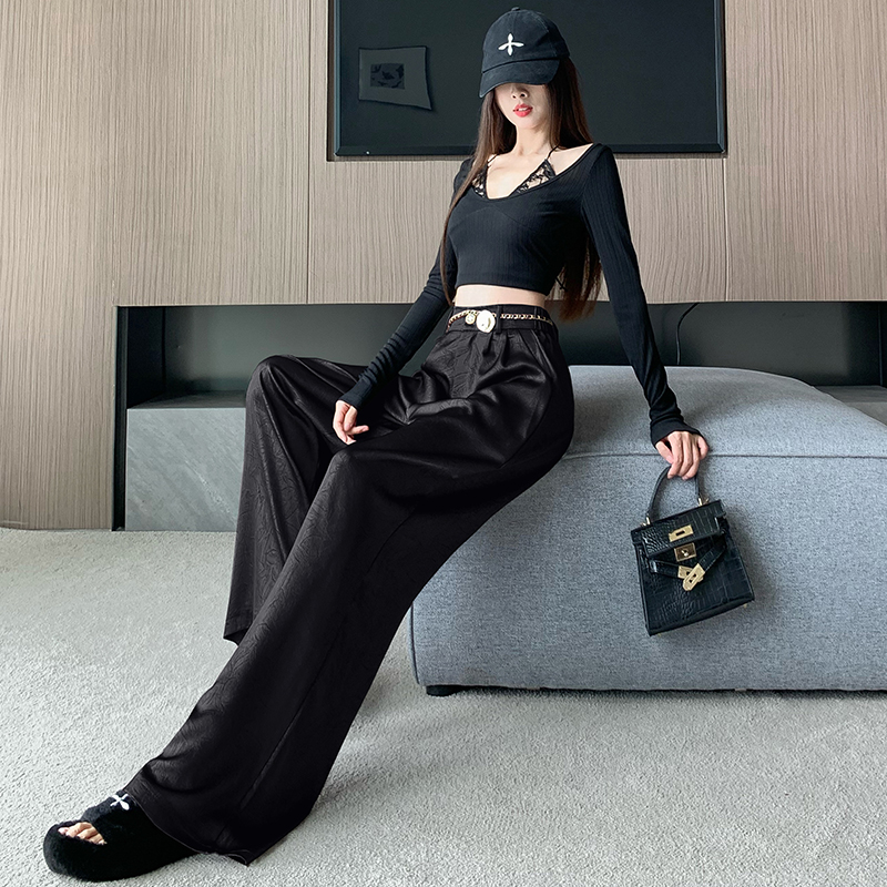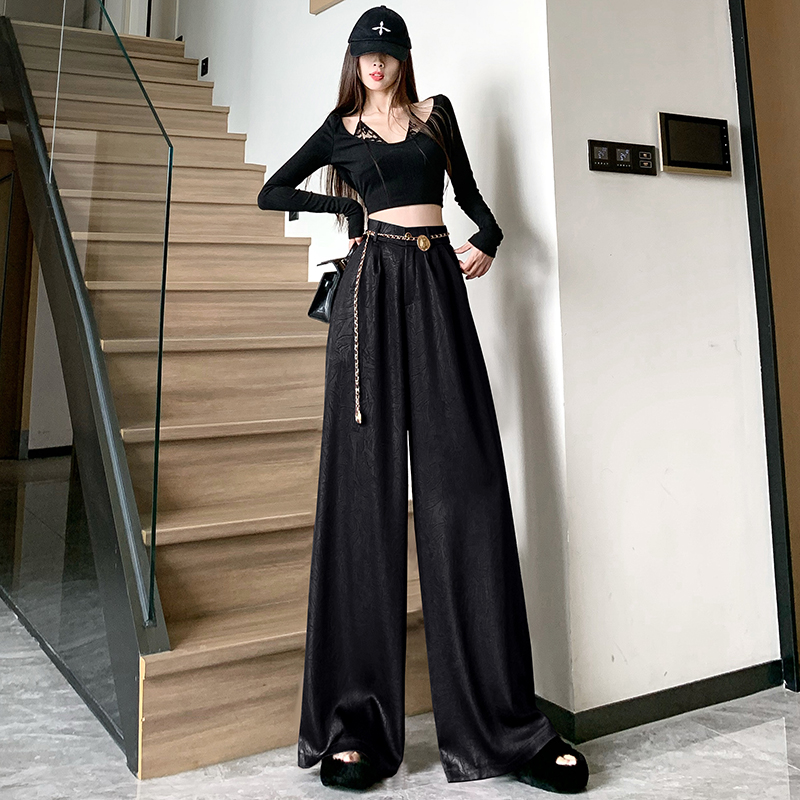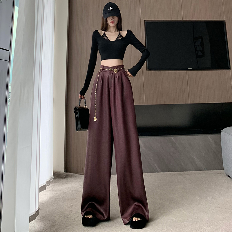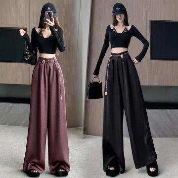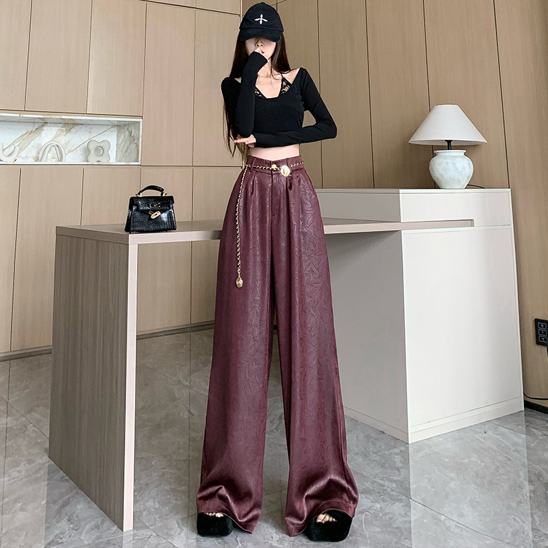 FA48597# 安可拉红皮裤女秋季高腰垂感宽松阔腿裤小个子显瘦直筒休闲拖地裤 服裝批發女裝批發服飾貨源