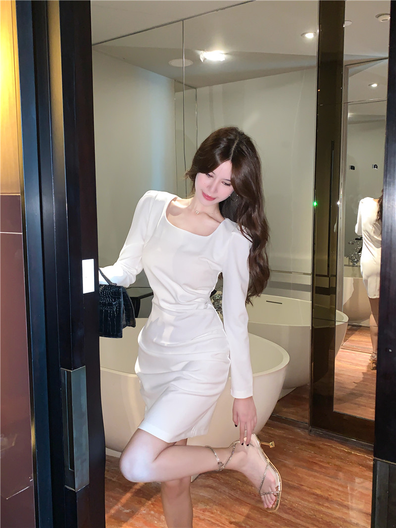 直播爆款纯欲风连衣裙女装韩版显瘦气质褶皱工作裙子 服裝批發女裝批發服飾貨源