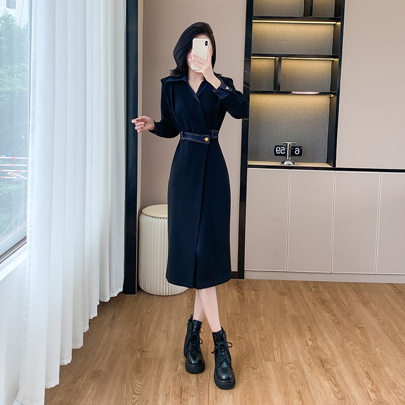 冬季连衣裙女新款法式百搭显瘦气质名媛黑色裙子包臀裙 服裝批發女裝批發服飾貨源