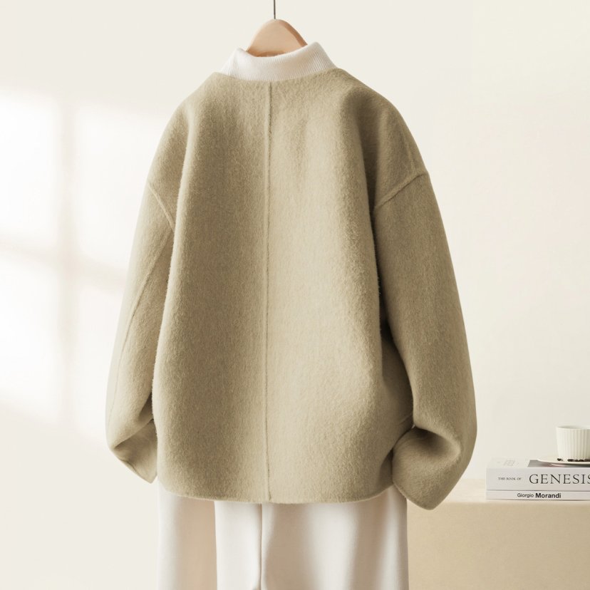 秋冬韩版短款纯色毛呢大衣高级感宽松外套上衣 服裝批發女裝批發服飾貨源