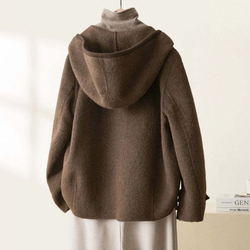 FA49942# 连帽短款毛呢大衣女冬季新款韩版宽松百搭牛角扣外套 服裝批發女裝批發服飾貨源