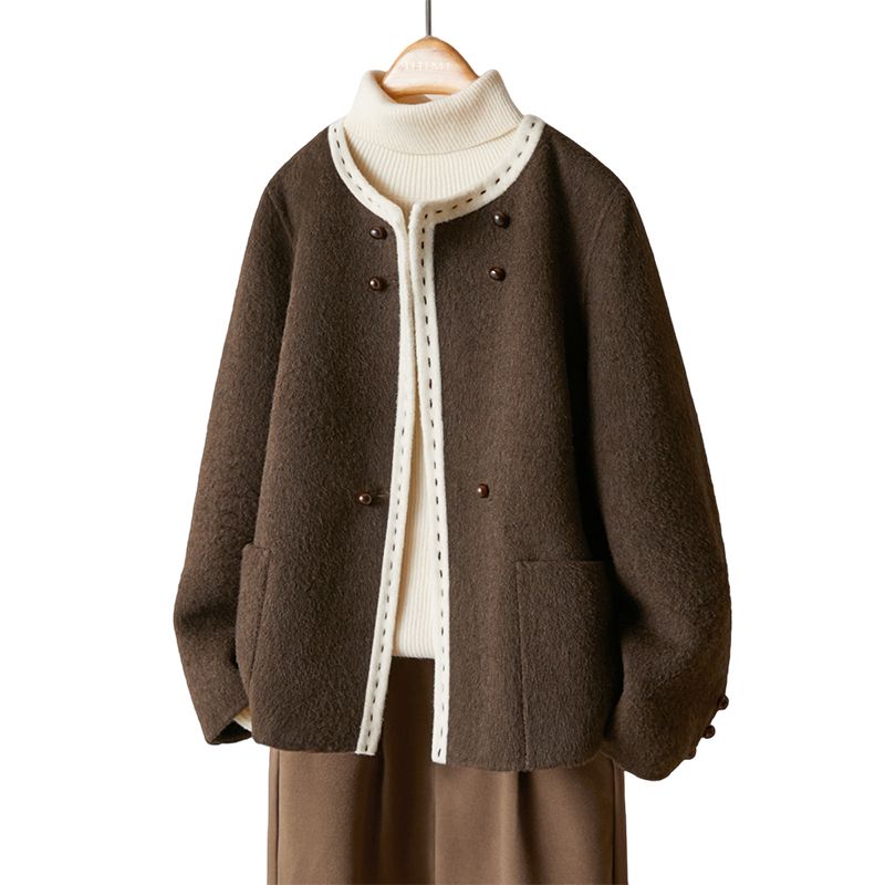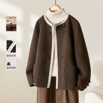 圆领短款百搭手工双面羊毛大衣秋冬新款毛呢大衣 服裝批發女裝批發服飾貨源
