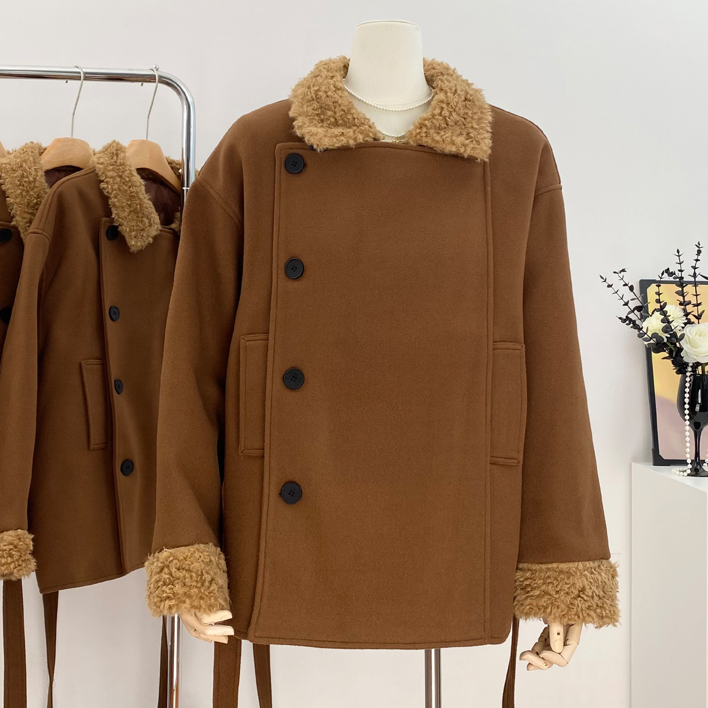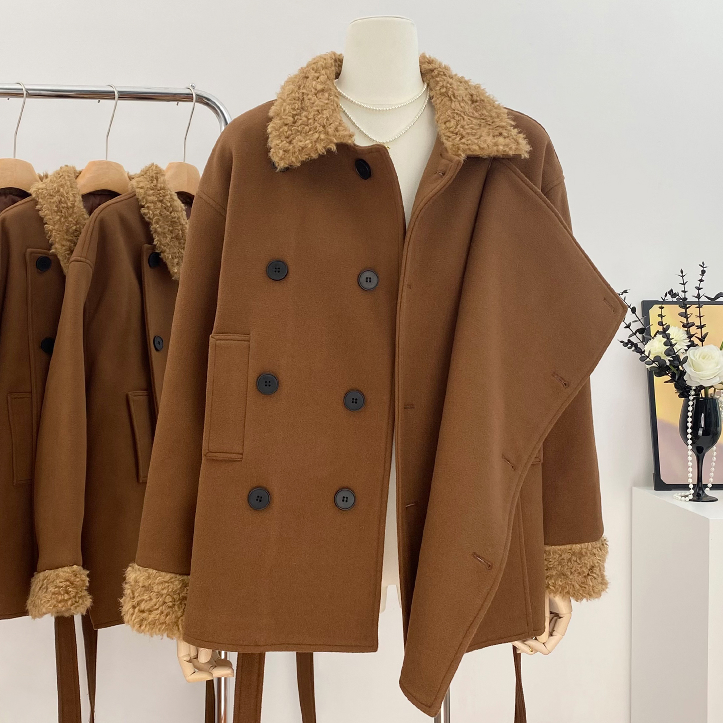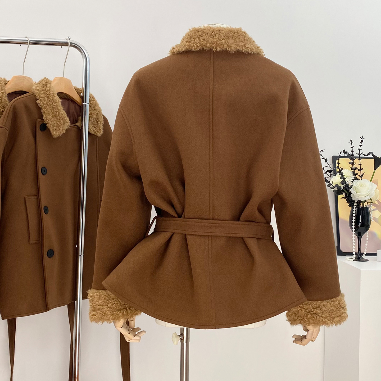 FA50385# 毛领加厚毛呢大衣外套女士小个子高级+阔腿裤 服裝批發女裝批發服飾貨源