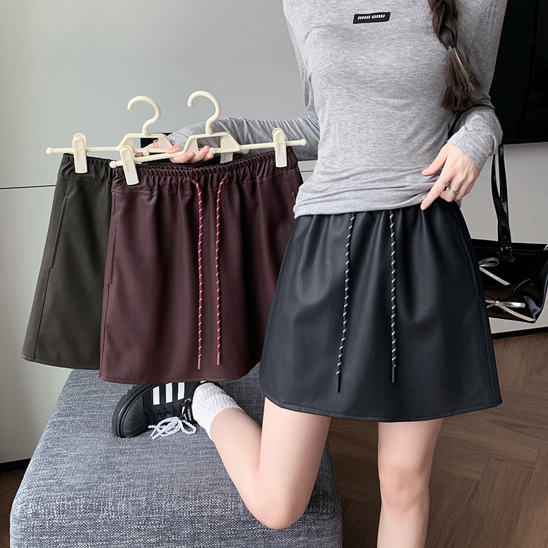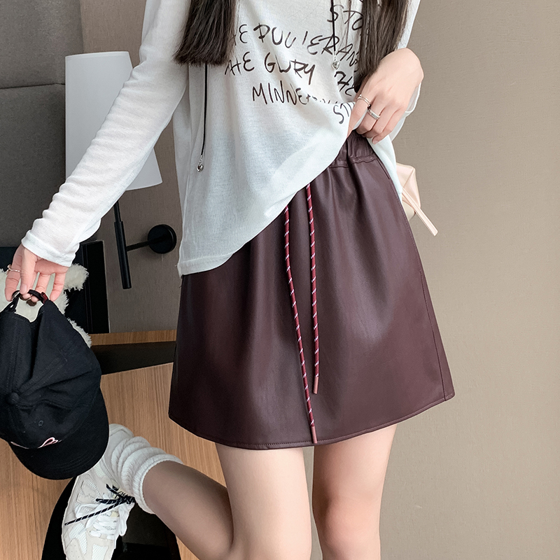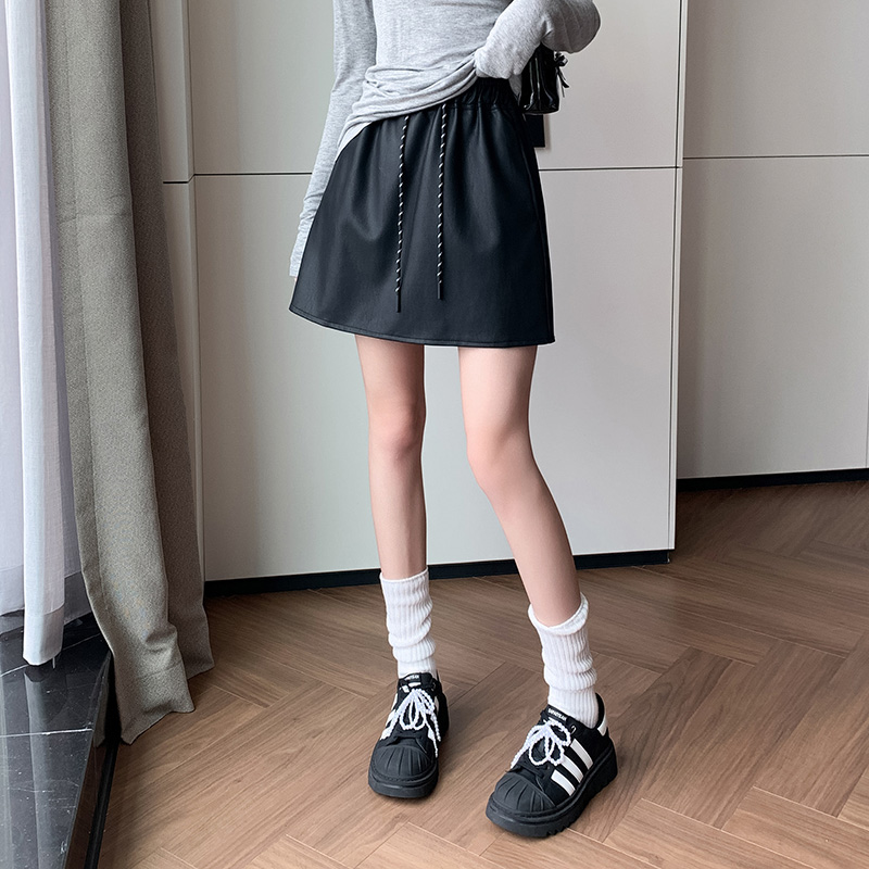 FA50630# 秋冬PU皮短裙休闲松紧腰皮裙A字包臀半身裙防走光皮卫裙 服裝批發女裝批發服飾貨源