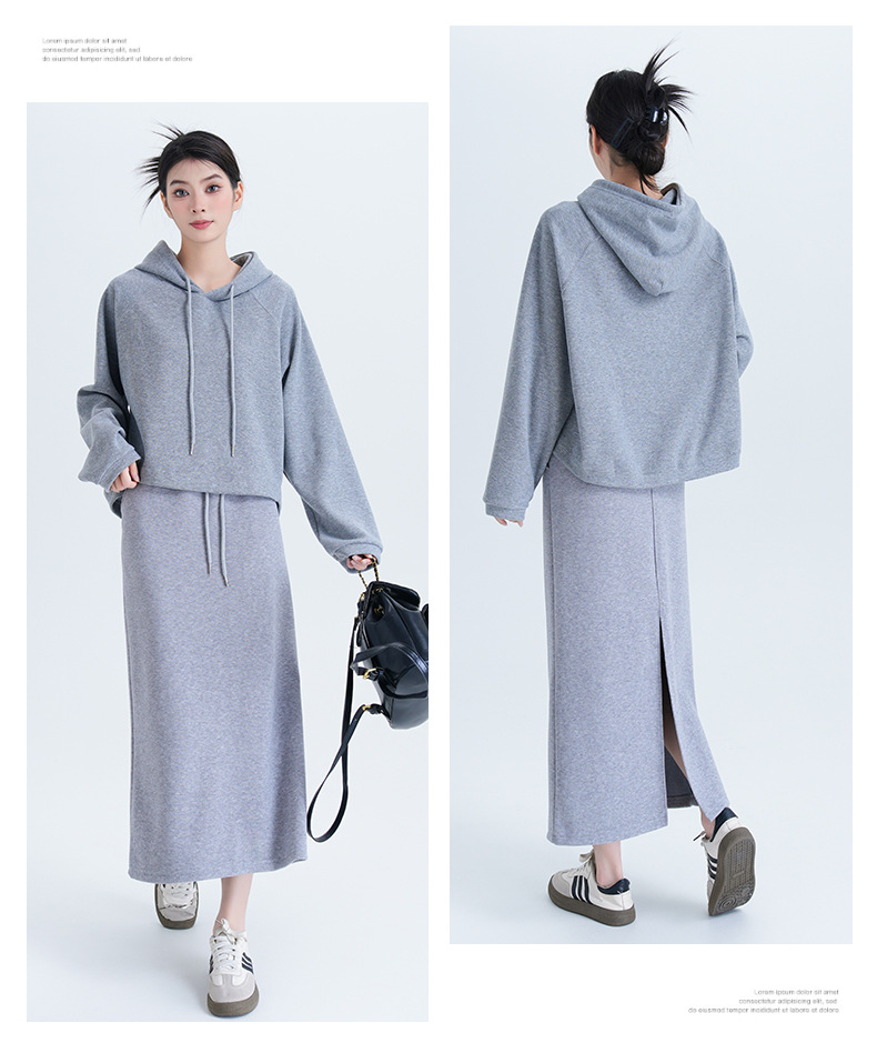 Home > 韩版套装 > FA50722# 早秋季套装裙两件套女装搭配一整套休闲运动连帽卫衣套装