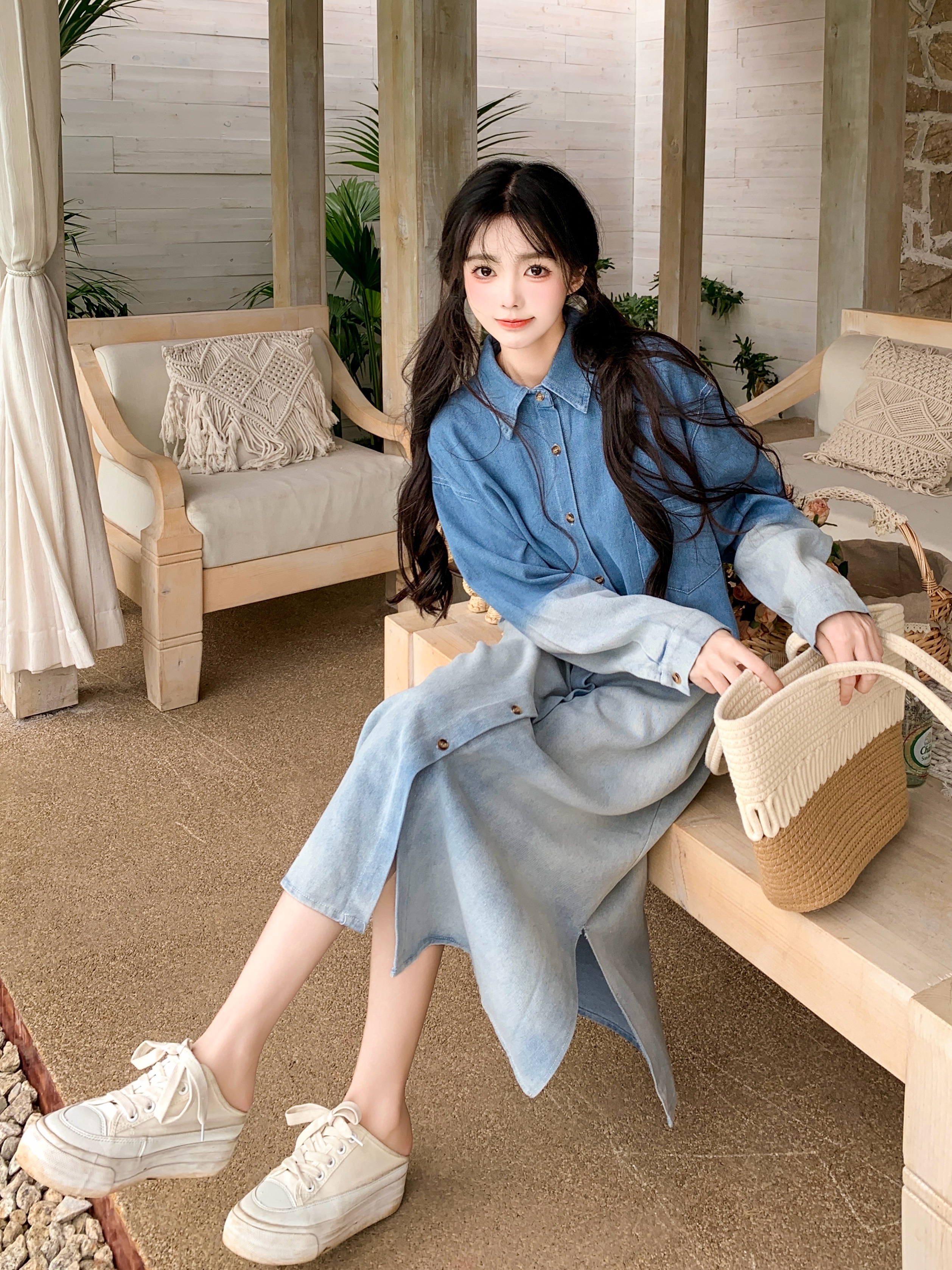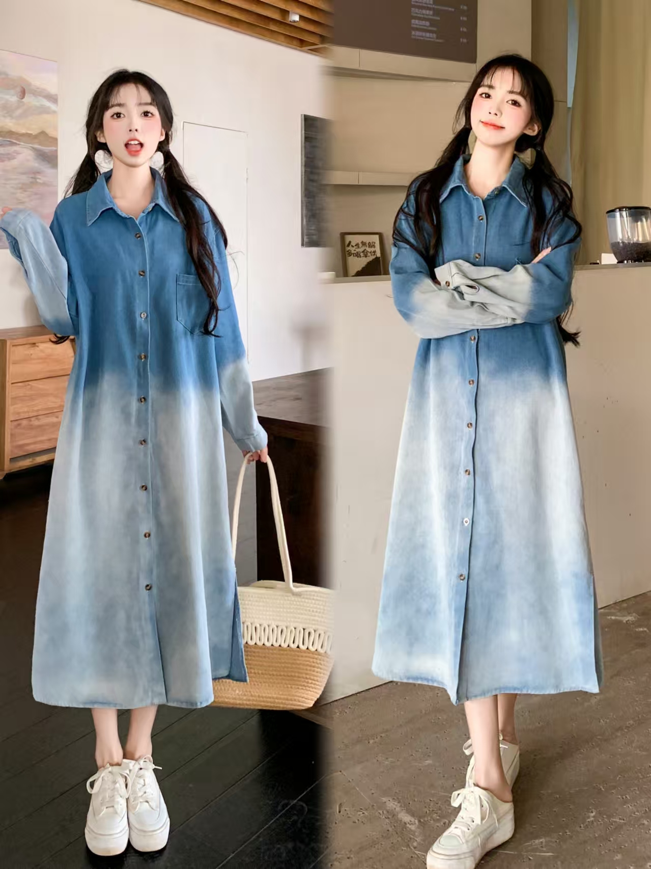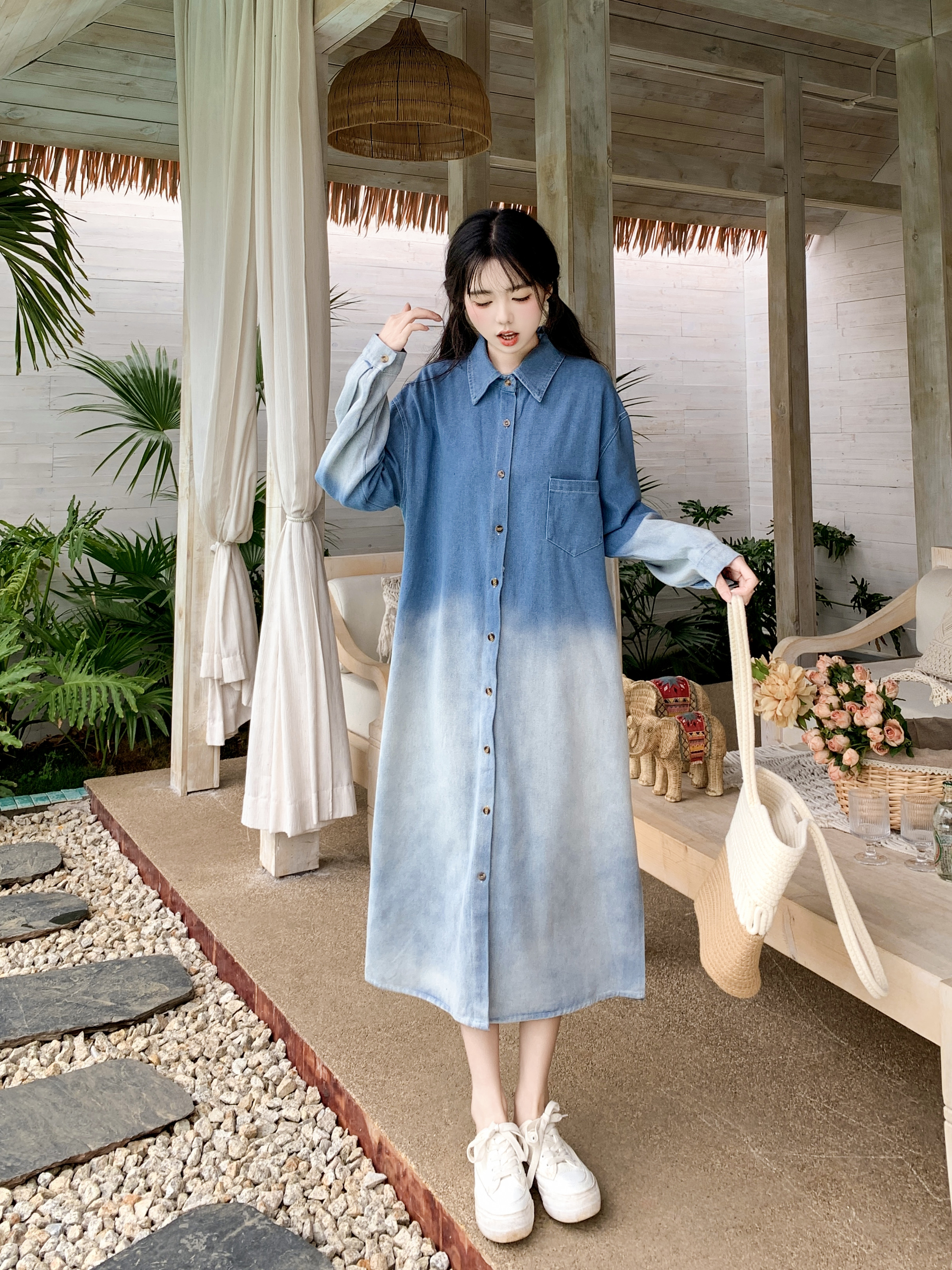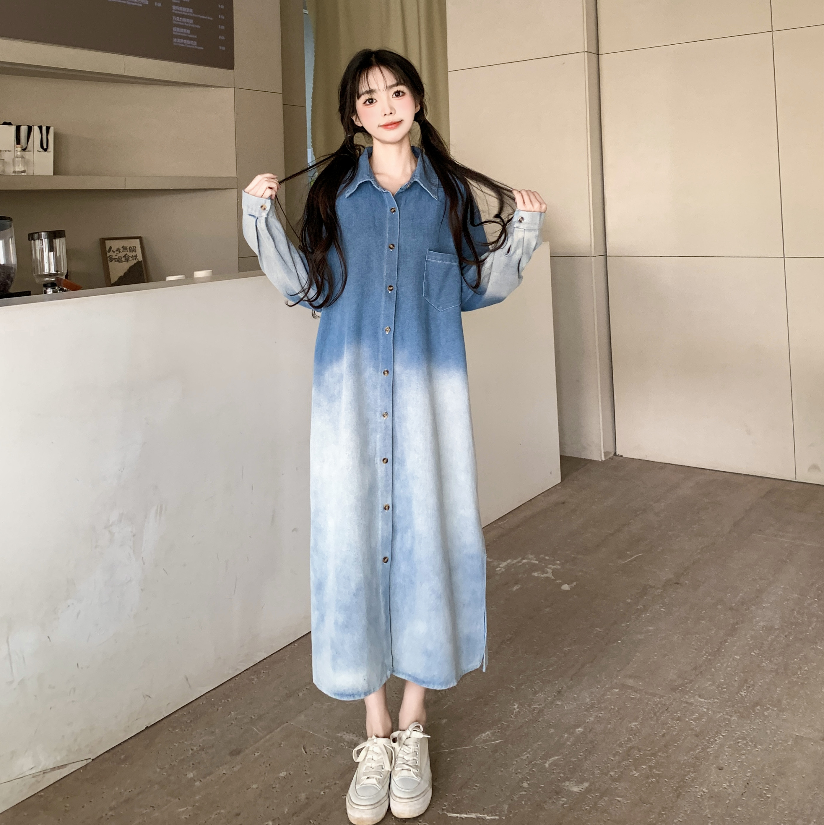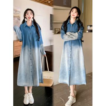 FA50732# 时尚大码女装春秋款中长款气质高档宽松显瘦渐变牛仔连衣裙女