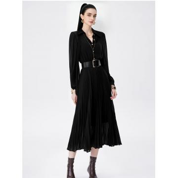 FA50736# 工厂直营三宅褶皱百搭修身雪纺连衣裙