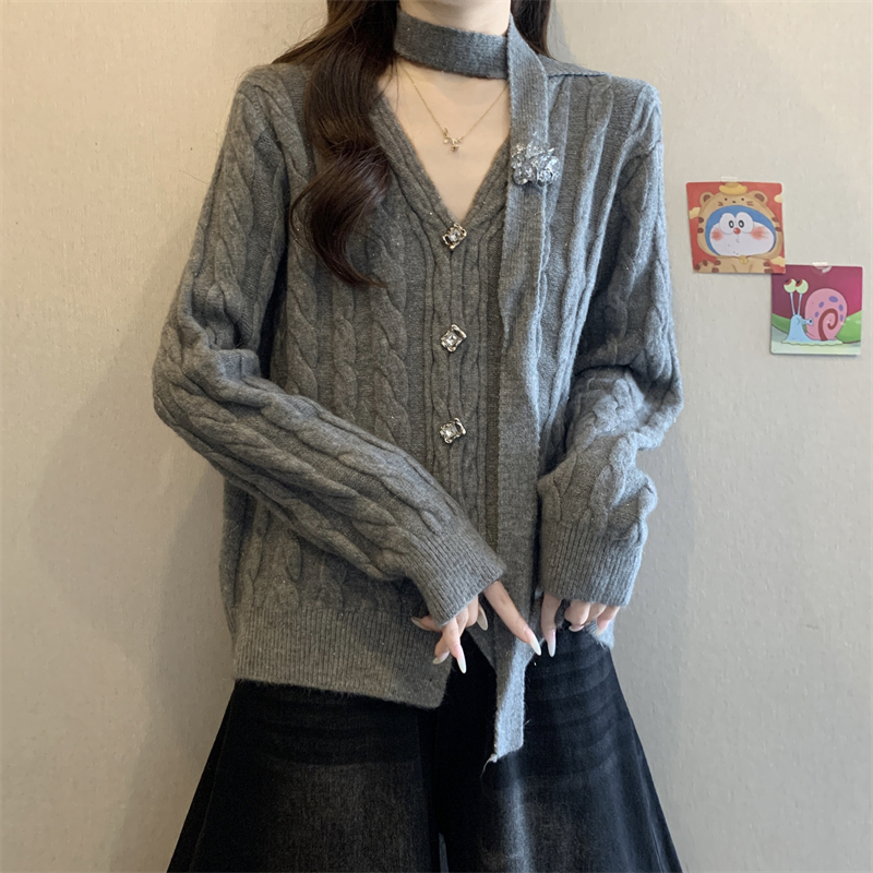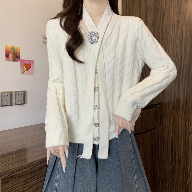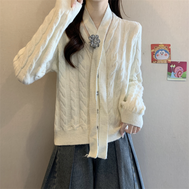 FA50752# 高级感小香风毛衣开衫女秋冬气质飘带红色氛围感外套