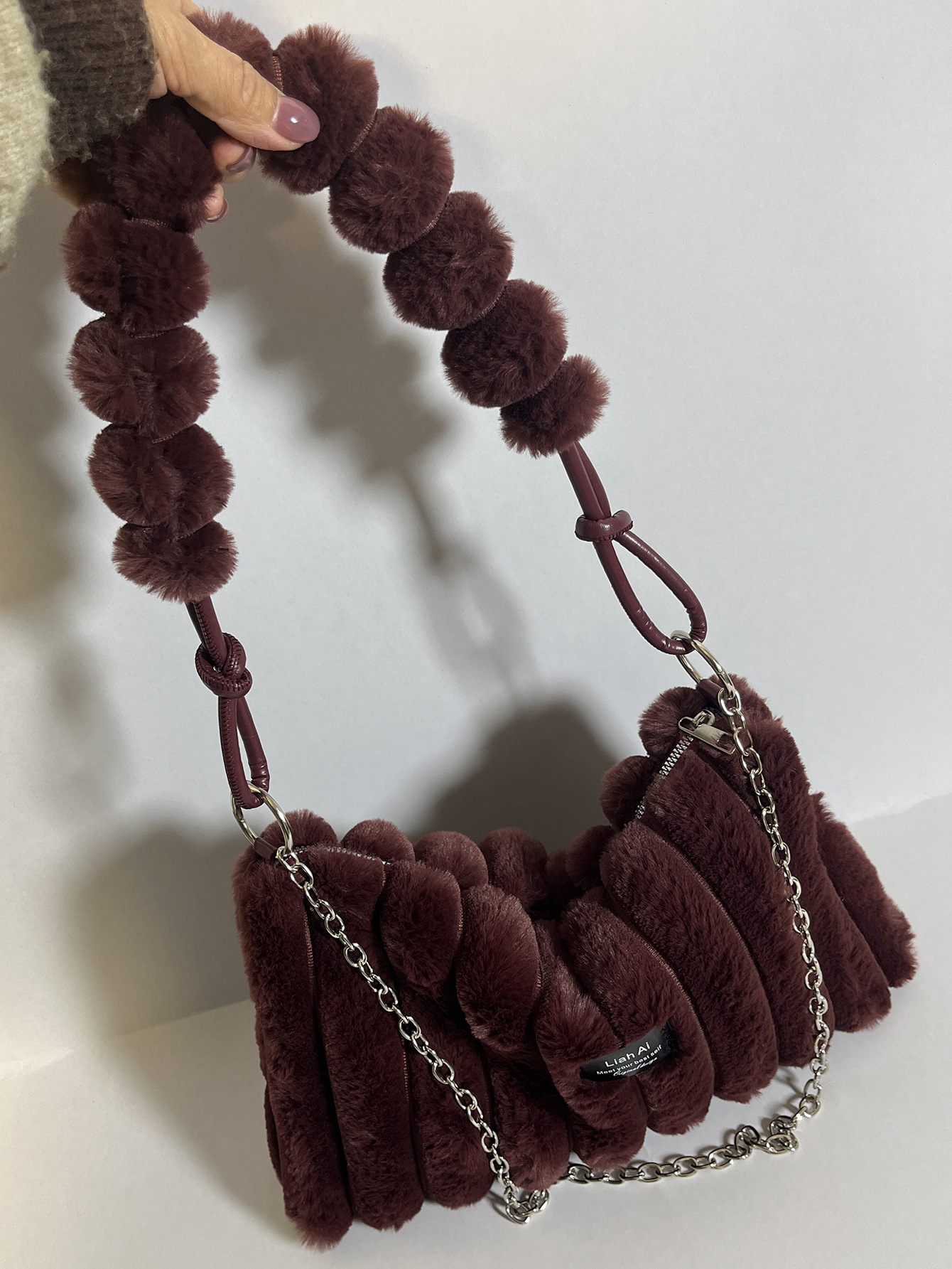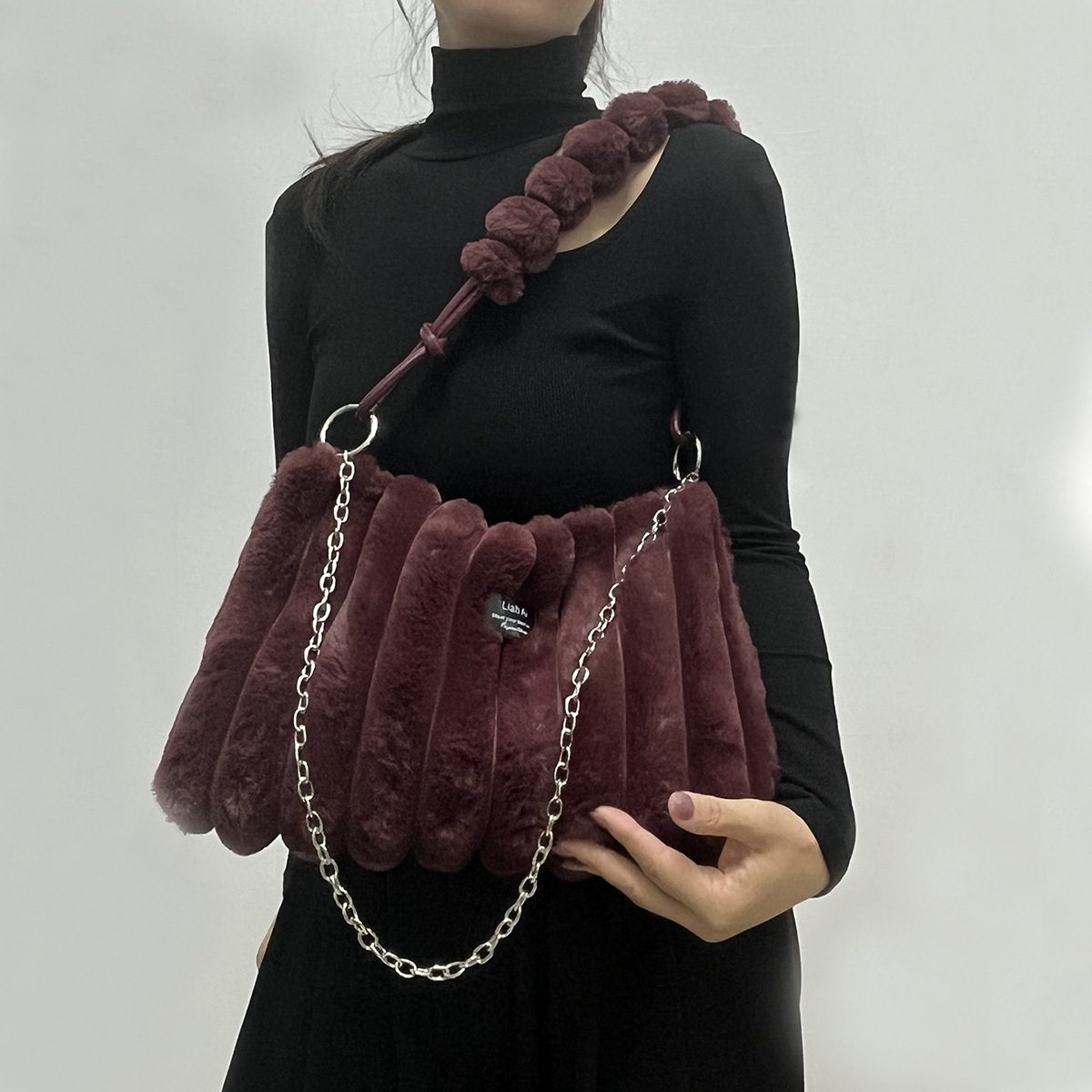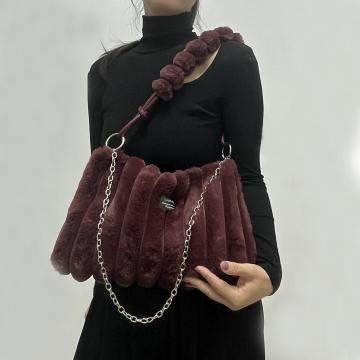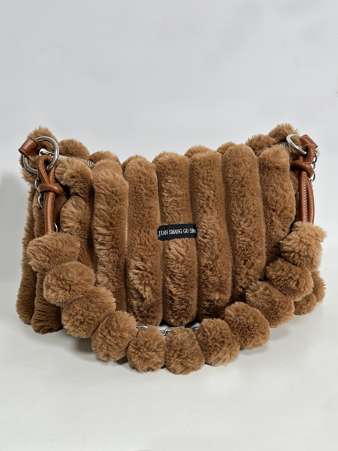 TJ2159# 毛绒单肩腋下包包女大容量2024秋冬新款手提毛毛包斜挎包拉链大包