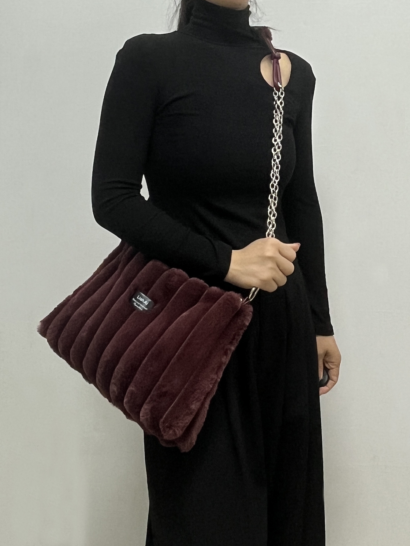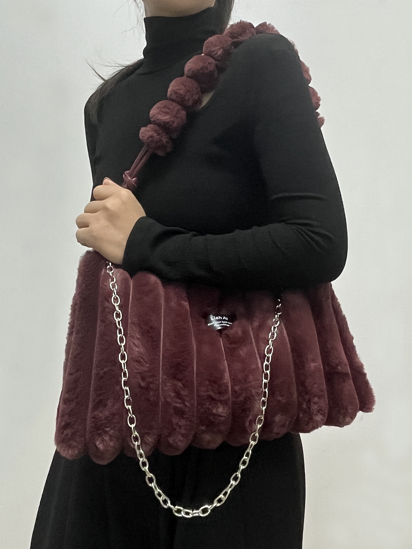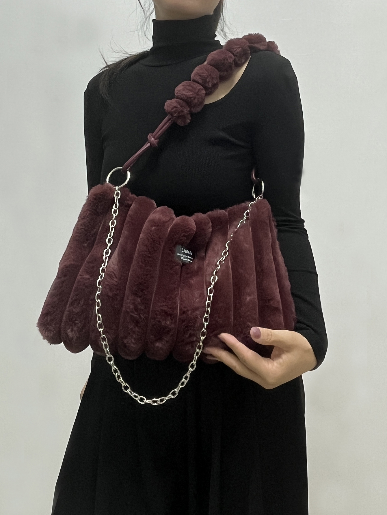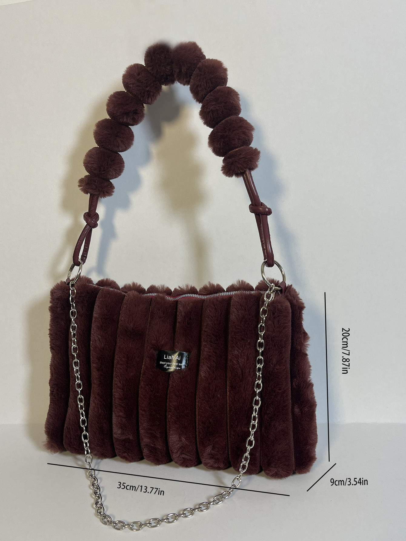 TJ2159# 毛绒单肩腋下包包女大容量2024秋冬新款手提毛毛包斜挎包拉链大包