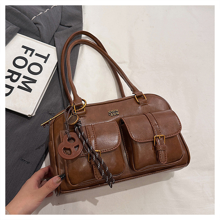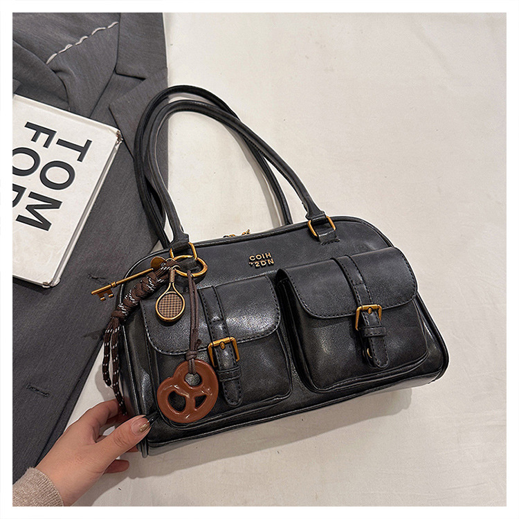 TJ2150# 复古小众腋包包女秋冬百搭新潮韩国手提大容量保龄球包外贸批发