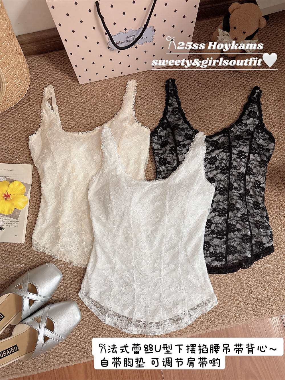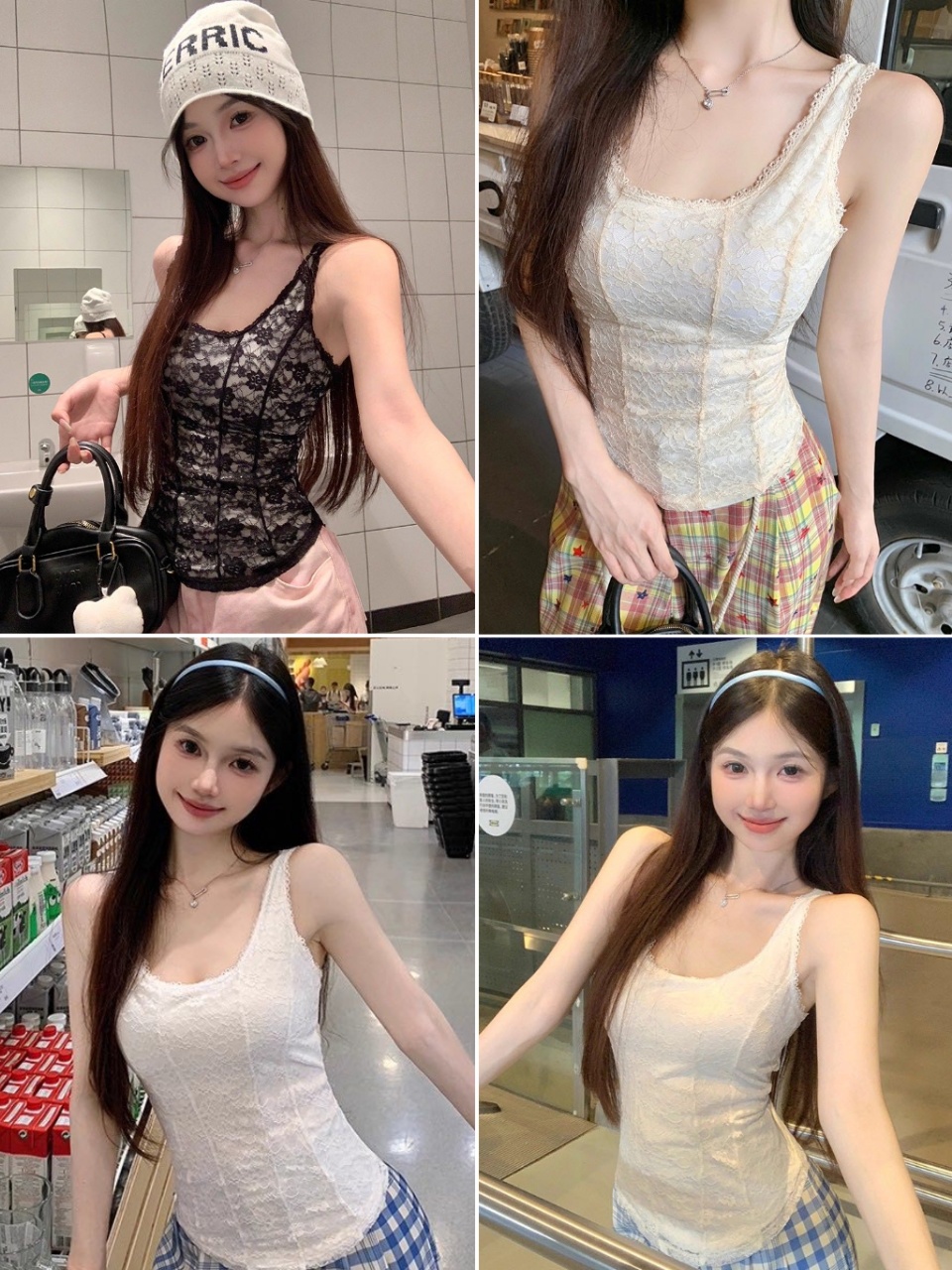 FA50802# 纯欲吊带重工蕾丝背心内搭设计感小众上衣百搭显瘦潮 服裝批發女裝批發服飾貨源