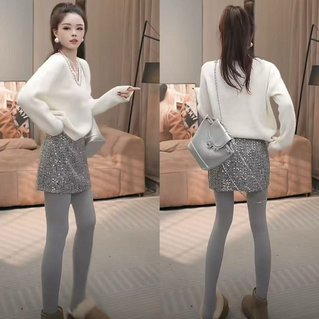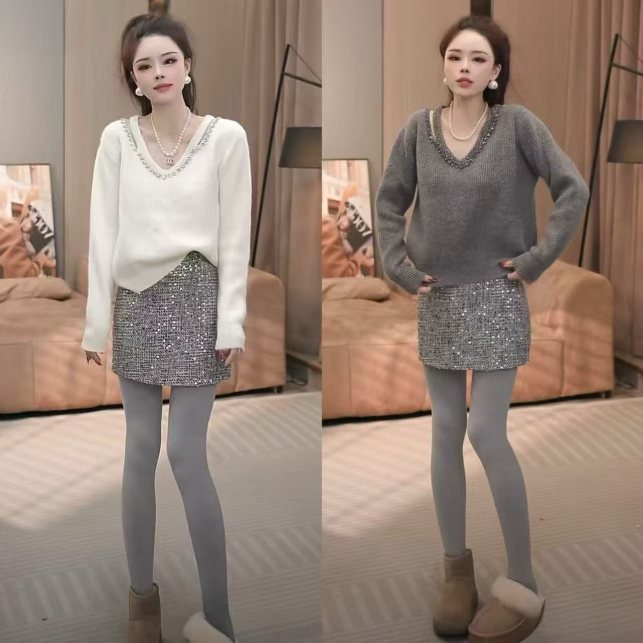FA51156# 法式v领长袖针织衫女新款春秋款重工钉钻设计感洋气减龄上衣 服裝批發女裝批發服飾貨源