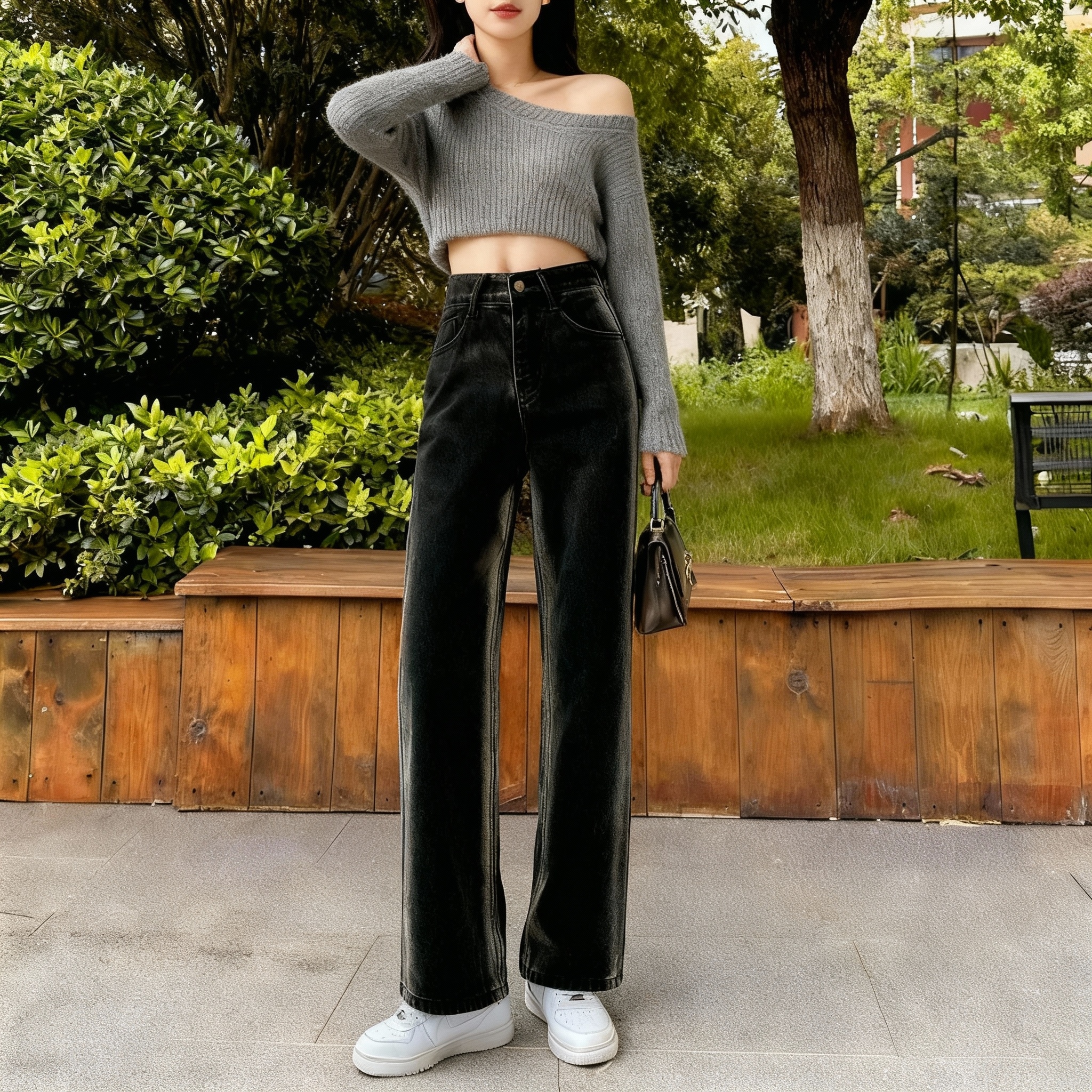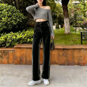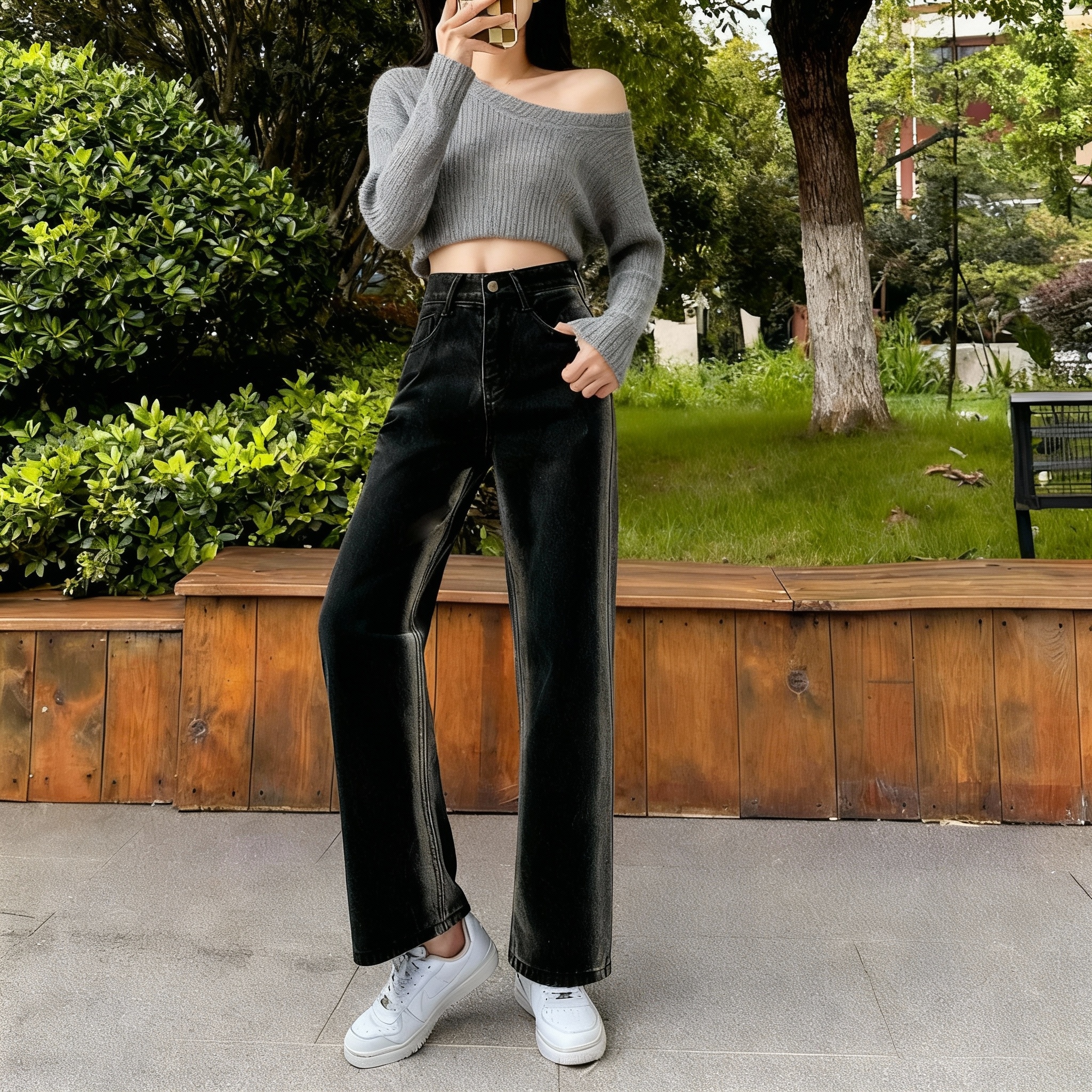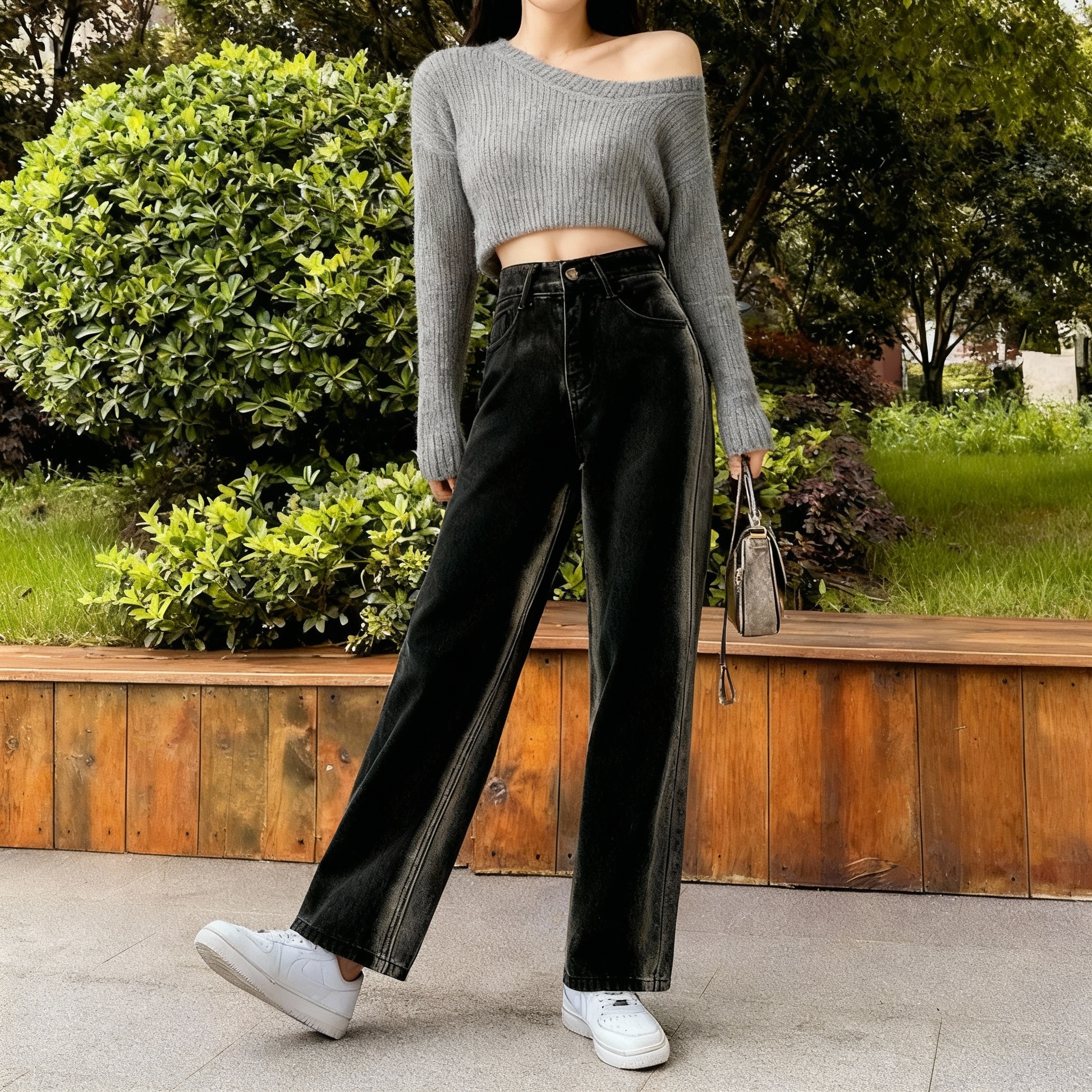 FA51195# 小个子美式春秋渐变牛仔裤复古xxs高腰直筒阔腿九分拖地 服裝批發女裝批發服飾貨源