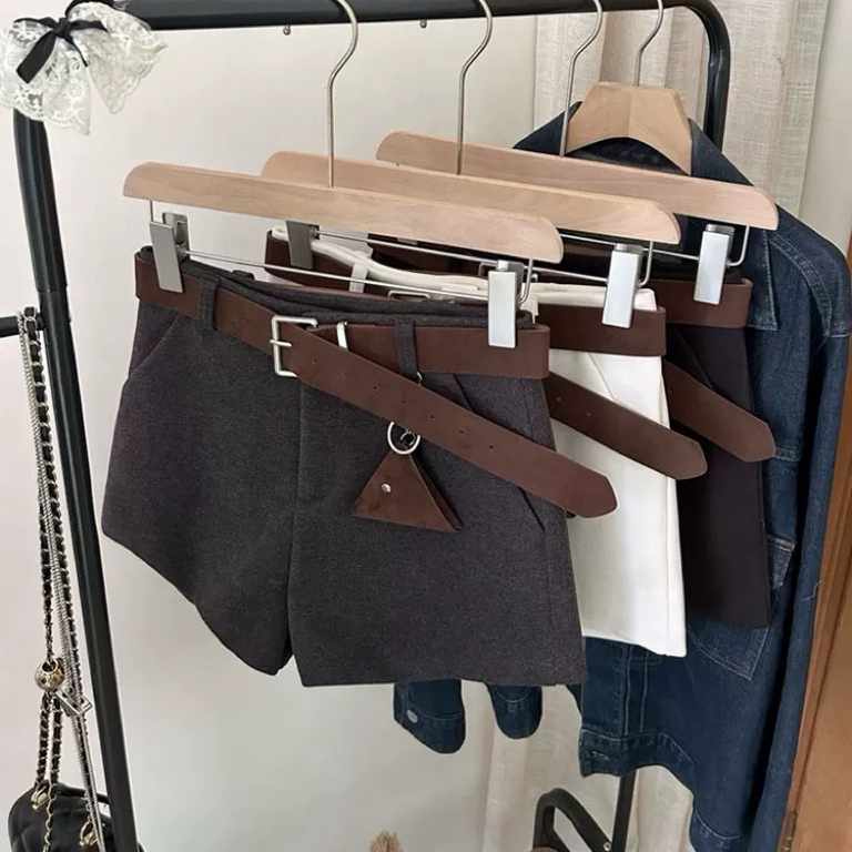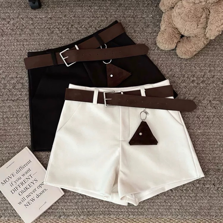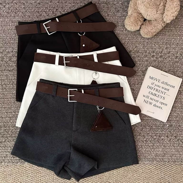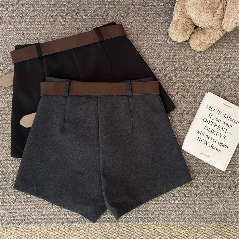 FA51220# 秋季新款复古毛呢百搭休闲裤修身显瘦配腰带高腰气质短裤女潮 服裝批發女裝批發服飾貨源