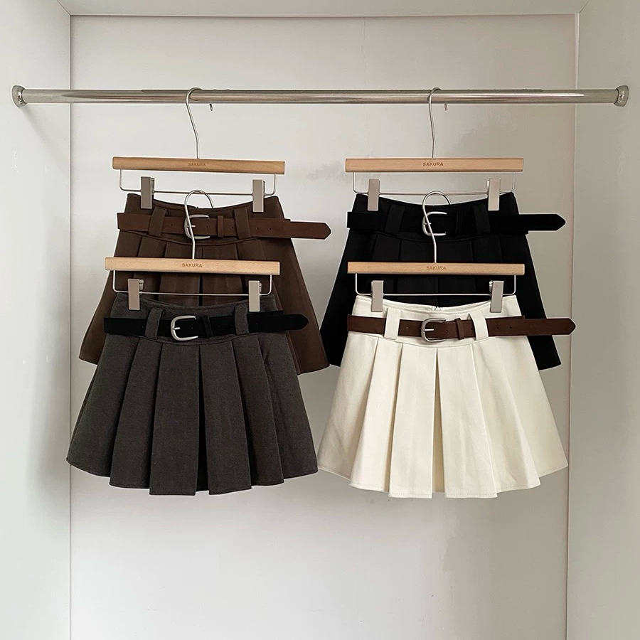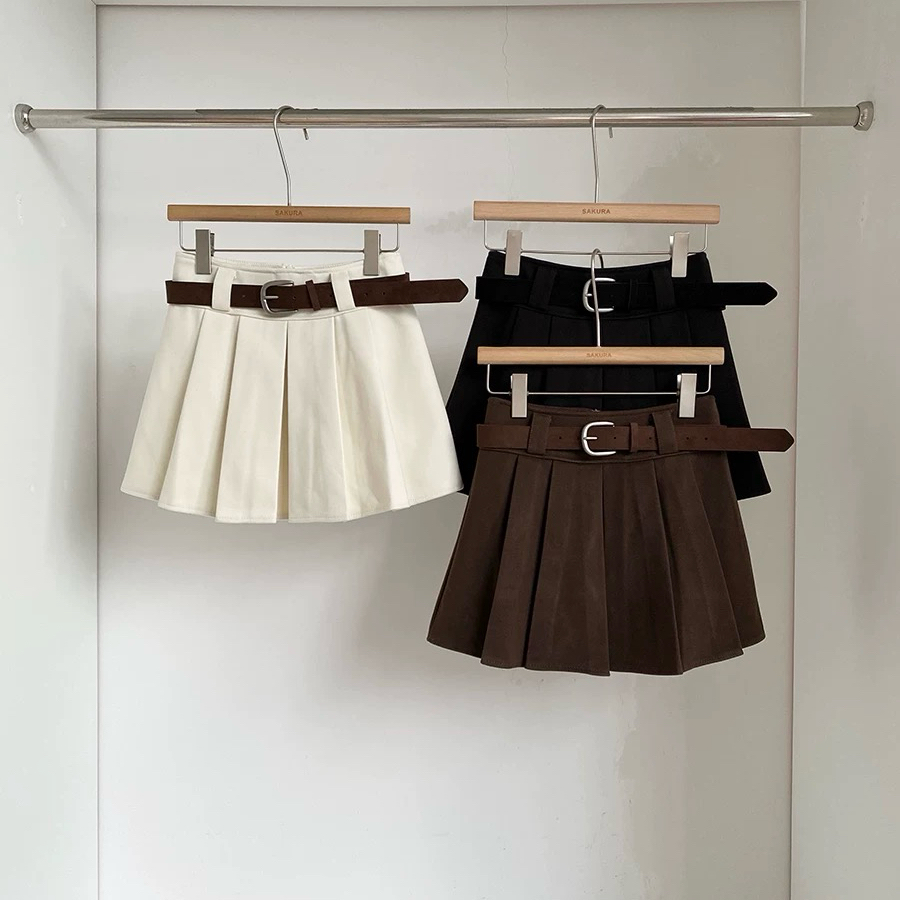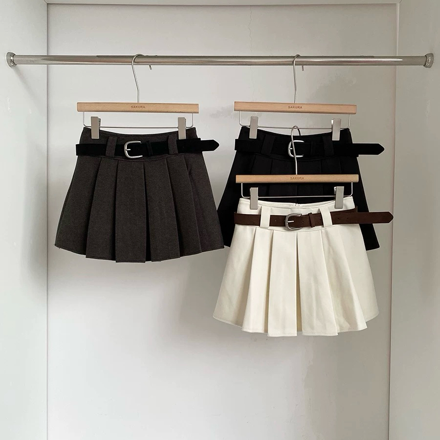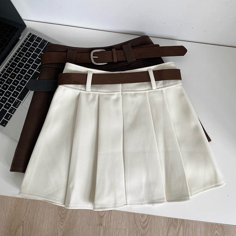 FA51221# 秋冬新款韩系ins温柔简约风纯色百搭高腰防走光A字百褶短裙女 服裝批發女裝批發服飾貨源