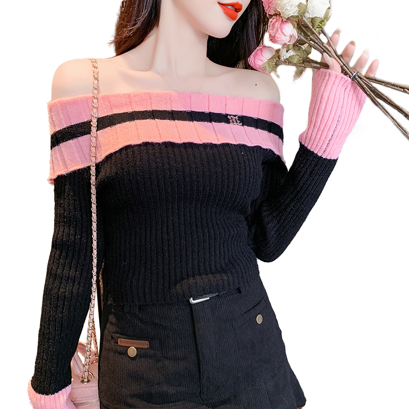 FA51402# 长袖毛衣修身一字领露肩性感修身韩版简约百搭甜美女装新款 服裝批發女裝批發服飾貨源
