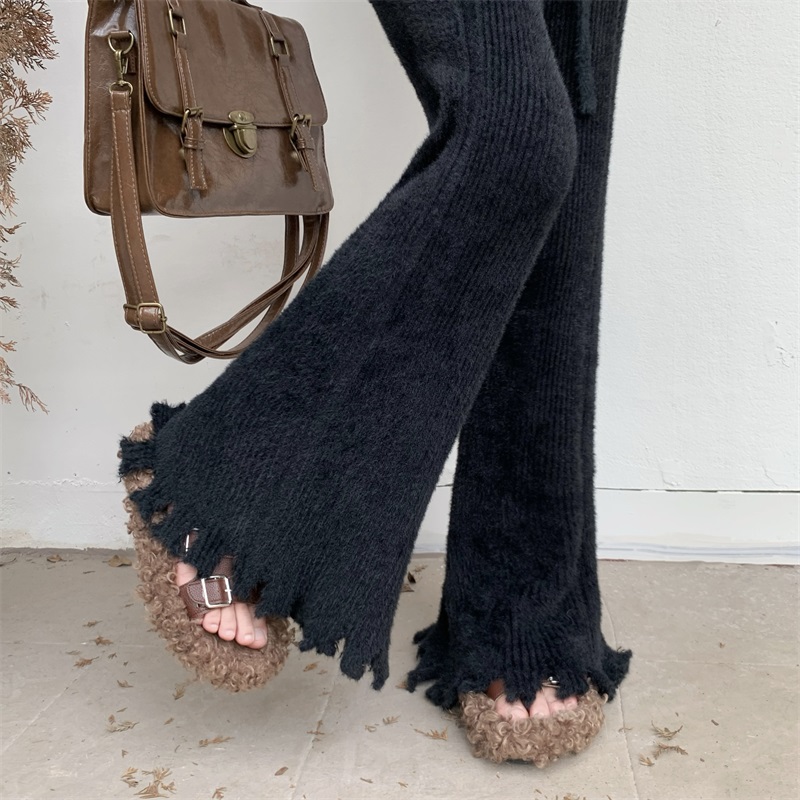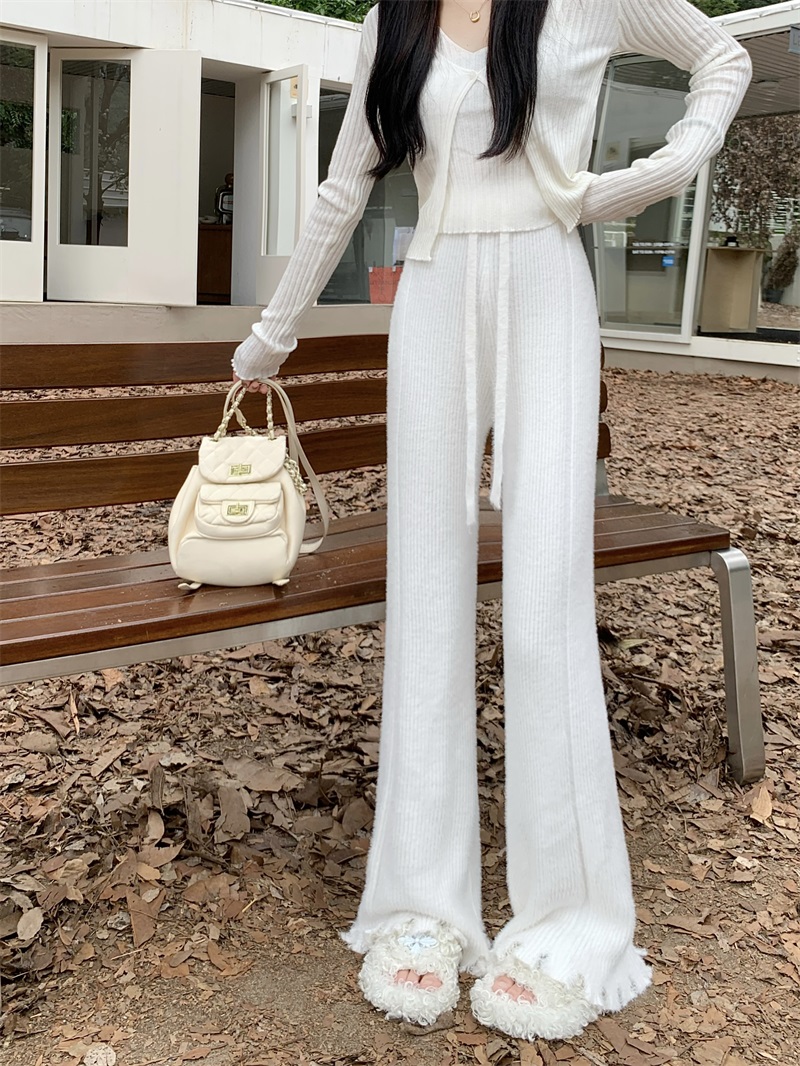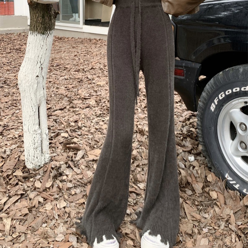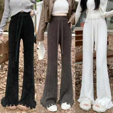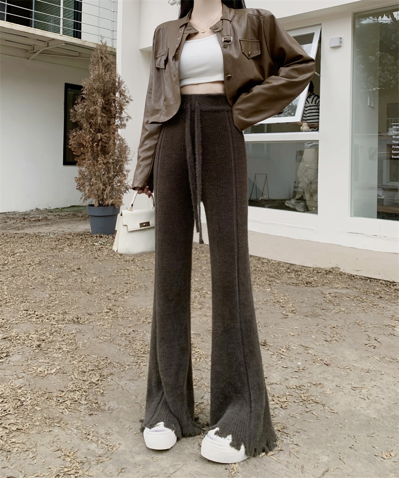 FA51424# 美拉德色系女秋冬水貂绒高腰垂感针织阔腿裤休闲直筒裤 服裝批發女裝批發服飾貨源