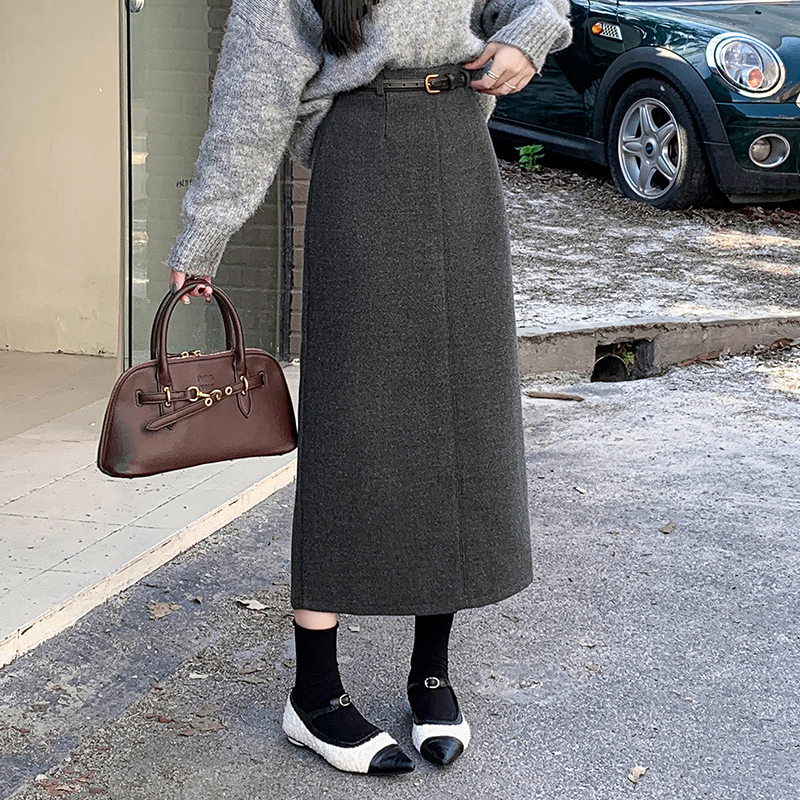 FA51442# 毛呢半身裙女秋冬中长款显瘦呢子高腰直筒长裙毛呢裙子 服裝批發女裝批發服飾貨源
