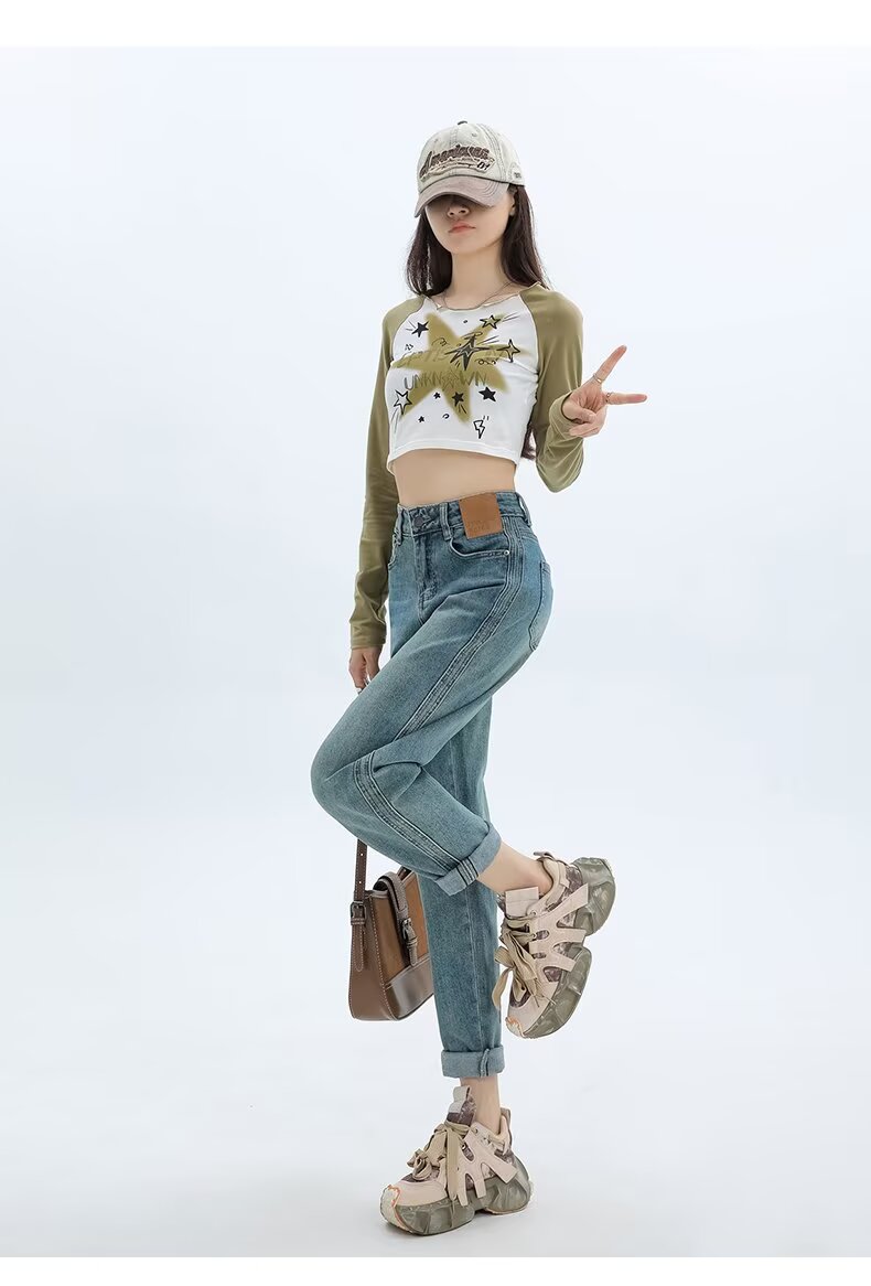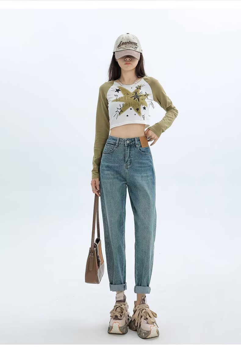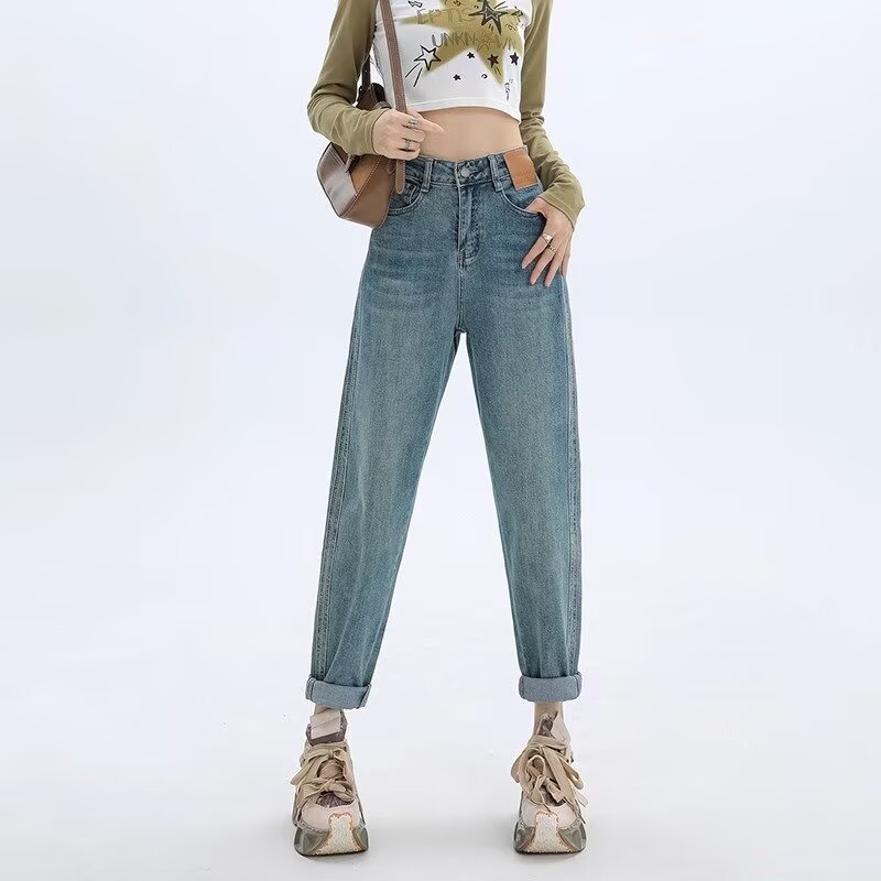 FA51449# 阔腿裤宽松牛仔裤新款女高腰小个子老爹裤大码女胖mm显瘦 服裝批發女裝批發服飾貨源